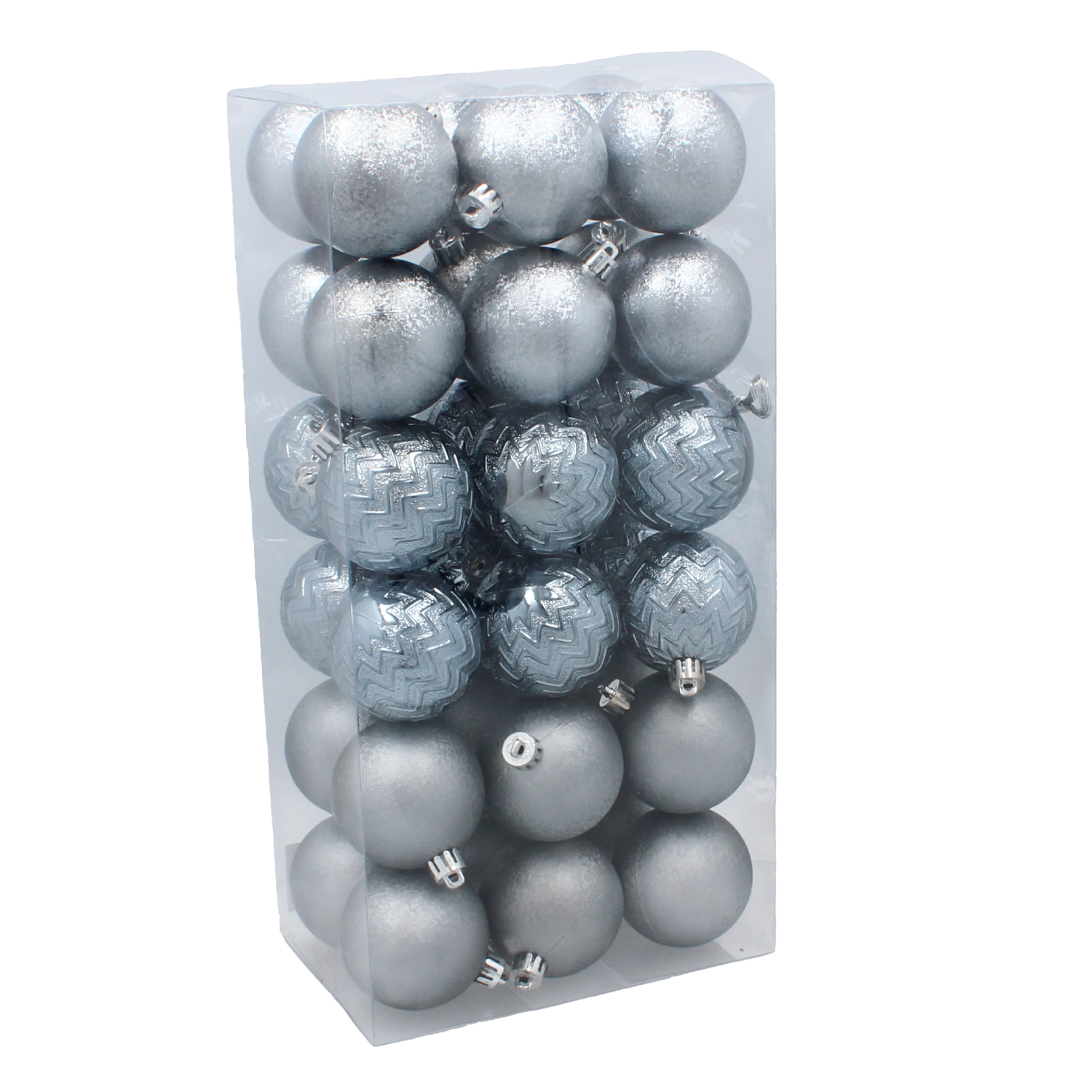 Minden szín többféle dizájnban és felületkezelésben jelenik meg, köztük matt és fényes változatokkal, amelyek mélységet, ragyogást és vizuális ritmust kölcsönöznek a fának. Az egységes, 6 cm-es átmérőnek köszönhetően a díszek szépen kitöltik az ágakat és kiegyensúlyozott elrendezést biztosítanak.