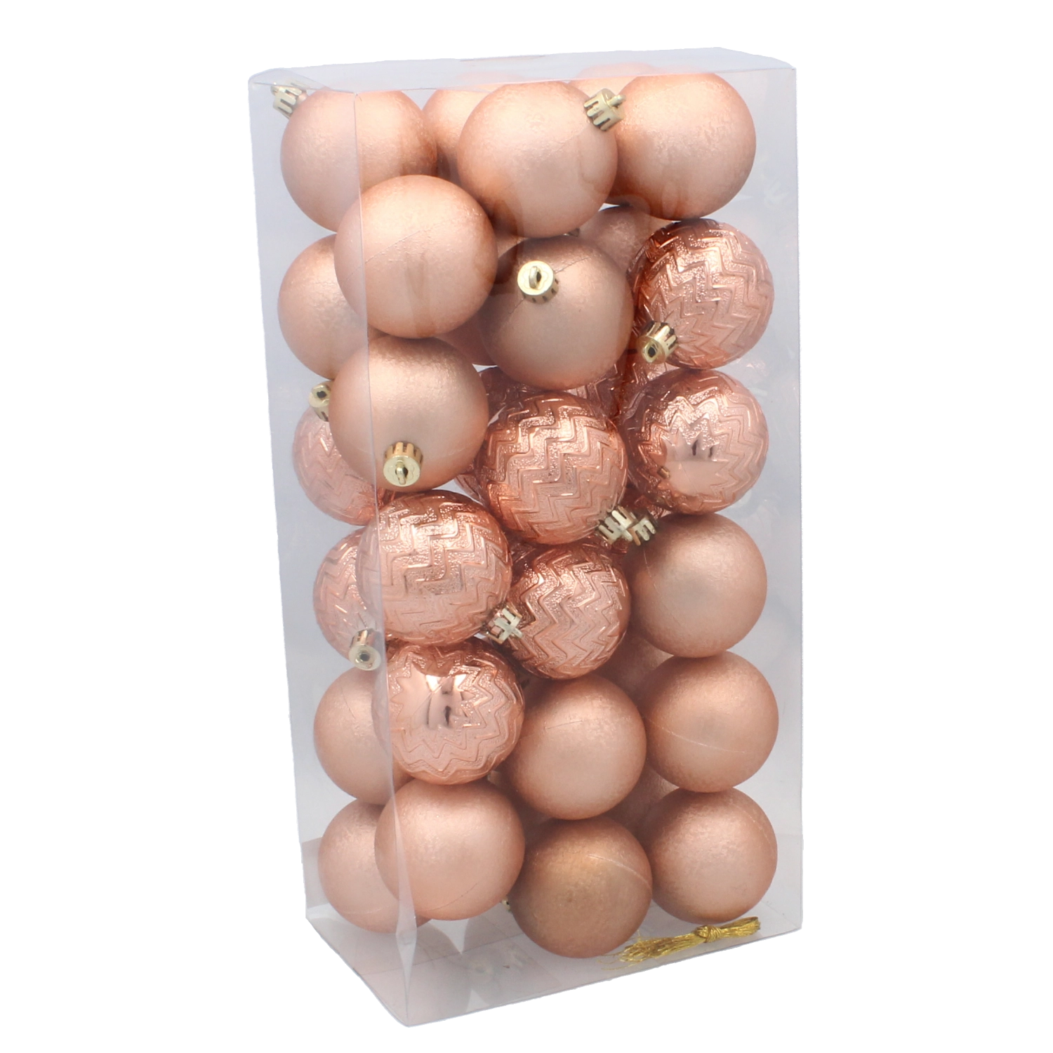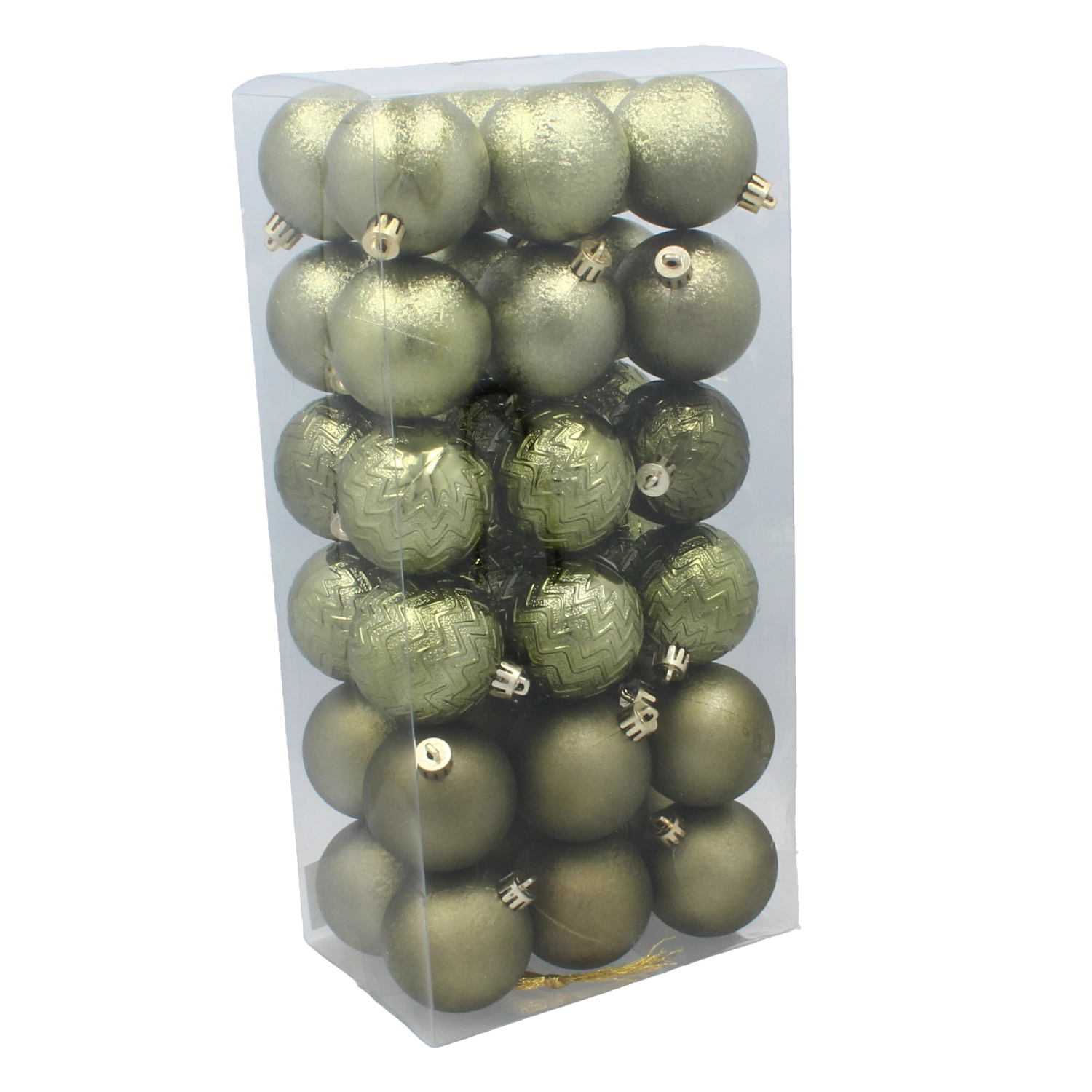 Alkosson tökéletesen összehangolt karácsonyfát a 36 darabos, 6 cm átmérőjű díszkészlettel olívazöld, réz és grafit elegáns árnyalataiban. A könnyű és tartós műanyag törhetetlen, így ideális gyermekekkel és háziállatokkal élő háztartásokba is. A matt és fényes felületek, valamint a különböző minták kombinációja lehetővé teszi a kreatív elrendezést és a stílusos, modern megjelenést az enteriőrben.