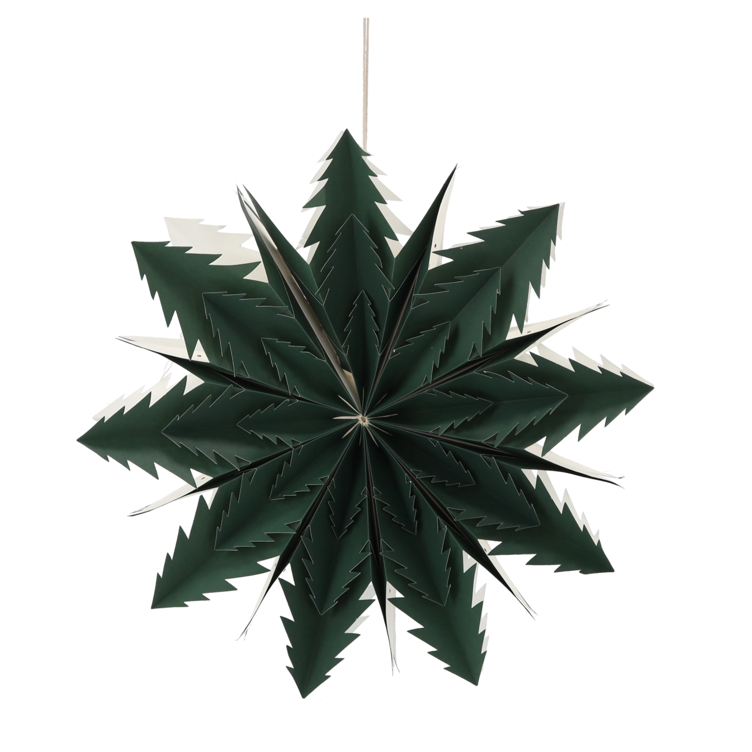 Ez a stílusos, sötétzöld papírcsillag időtlen téli és ünnepi dekoráció. Könnyű, összehajtható és többször használható – pillanatok alatt felakaszthatja ablakba, mennyezetre vagy kirakatba, és kellemes, hangulatos fényt varázsol.