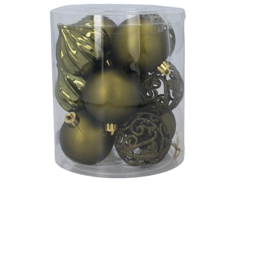 Ez az univerzális karácsonyi díszszett az olíva, réz és grafit trendi árnyalataiban remekül illik a minimalista, természetes és luxus dekorokhoz egyaránt. A könnyű és törhetetlen műanyag ideális választás gyerekes családoknak vagy házi kedvencekkel élőknek – dekoráljon gondtalanul és maximális biztonsággal.