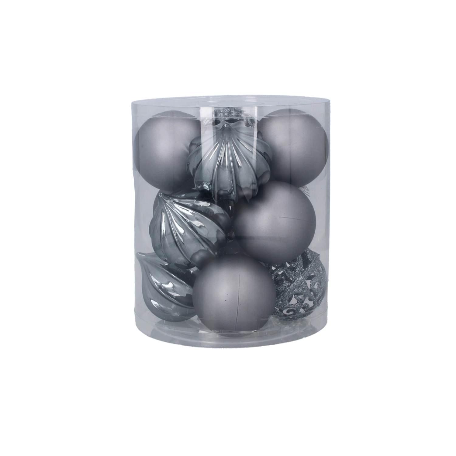 Az átlátszó henger biztonságban és rendezetten tartja a díszeket az ünnepek alatt és szezonon kívül is.