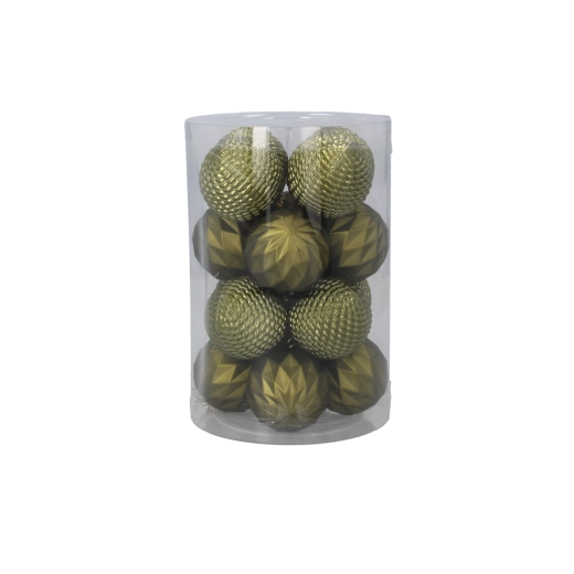 Minden dísz univerzális, 4 cm-es átmérőjű, így könnyen kombinálható más dekorációkkal, girlandokkal és fényfüzérekkel. Az átlátszó tubusos csomagolás megóvja a díszeket szállításkor és szezonon kívül is, továbbá egyszerű, átlátható tárolást biztosít.