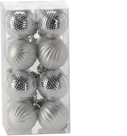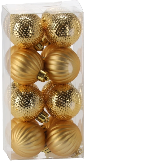 Teremtsen harmonikusan összehangolt karácsonyi dekorációt a 16 darabos, 4 cm átmérőjű gömbszettel a hagyományos piros, arany és ezüst színekben. A matt, fényes és glitteres felületek barázdált és pöttyözött textúrákkal látványos fényjátékot és stílusos, elegáns megjelenést biztosítanak.