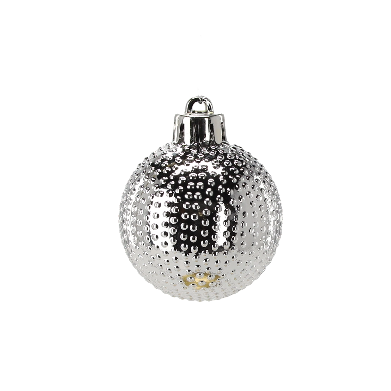 A finoman pöttyözött felületű, magasfényű gömbök visszaverik a fényt, és szikrázó hatást adnak a dekorációnak az elegancia feláldozása nélkül.