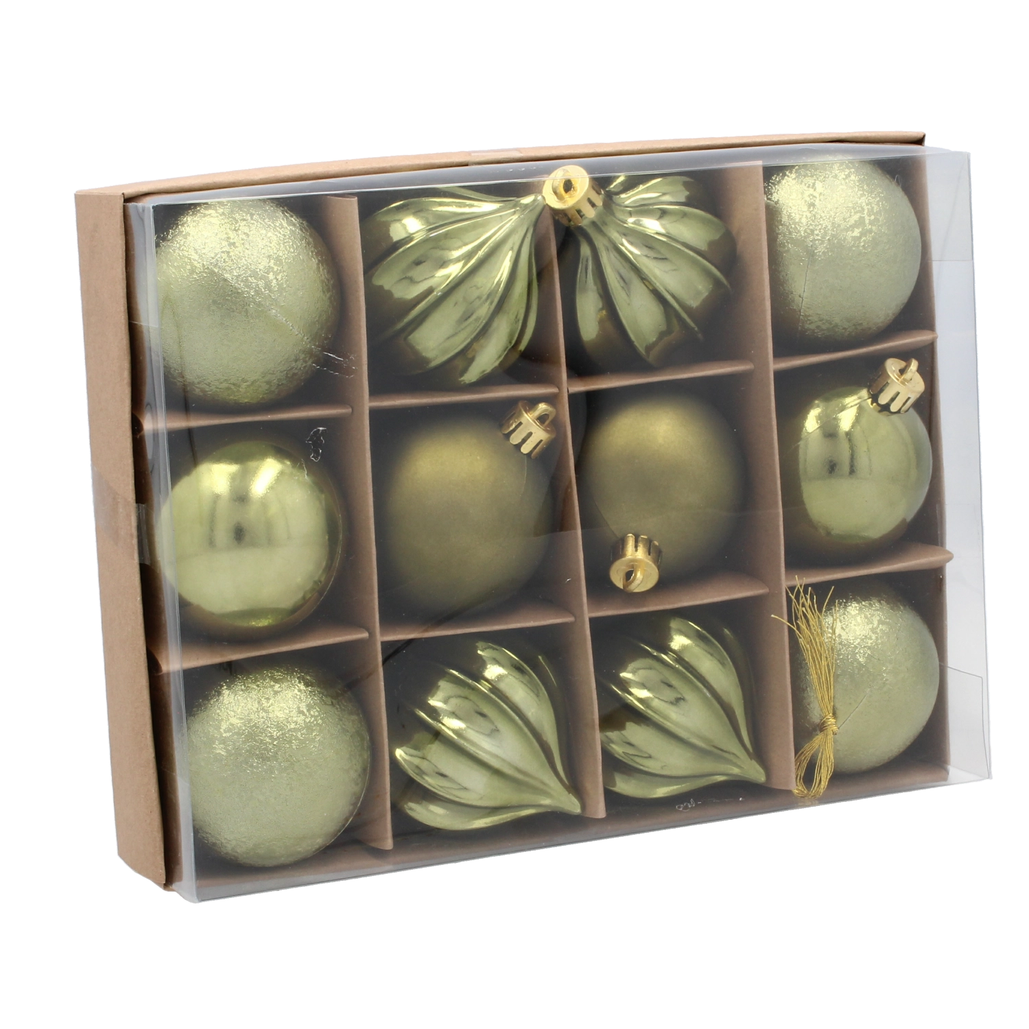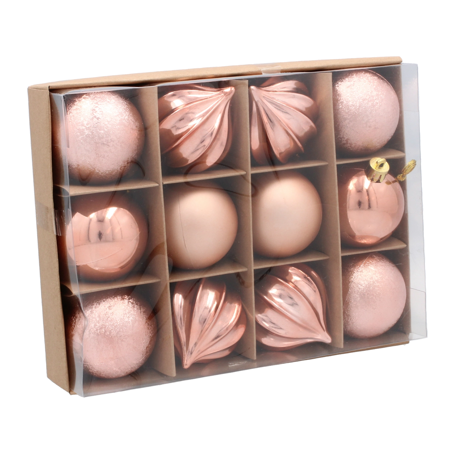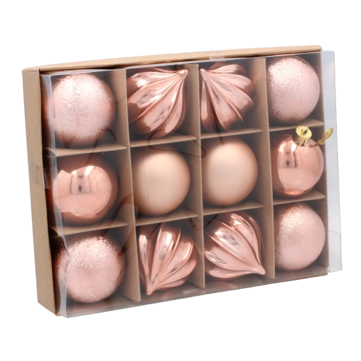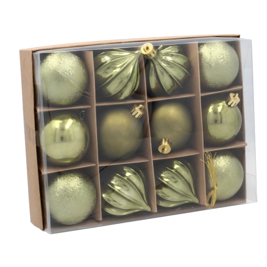 Teremtsen harmonikus ünnepi hangulatot a 12 darabos szettel, amely három trendi árnyalatot – olívazöldet, rezet és grafitot – kombinál. Minden gömb 6 cm átmérőjű, és a különféle felületeknek és mintáknak köszönhetően könnyedén ad mélységet és stílust a dekorációnak.