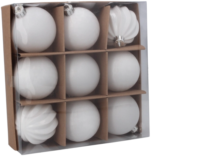 A csomag 9 darabot tartalmaz, így egy közepes méretű fán egyenletesen eloszlathatók. Az egységes fehér szín megkönnyíti az összehangolást más dekorációkkal, fényfüzérekkel és szalagokkal. DIY-hoz is ideális – díszíthető csillámokkal, szalagokkal vagy feliratokkal.
