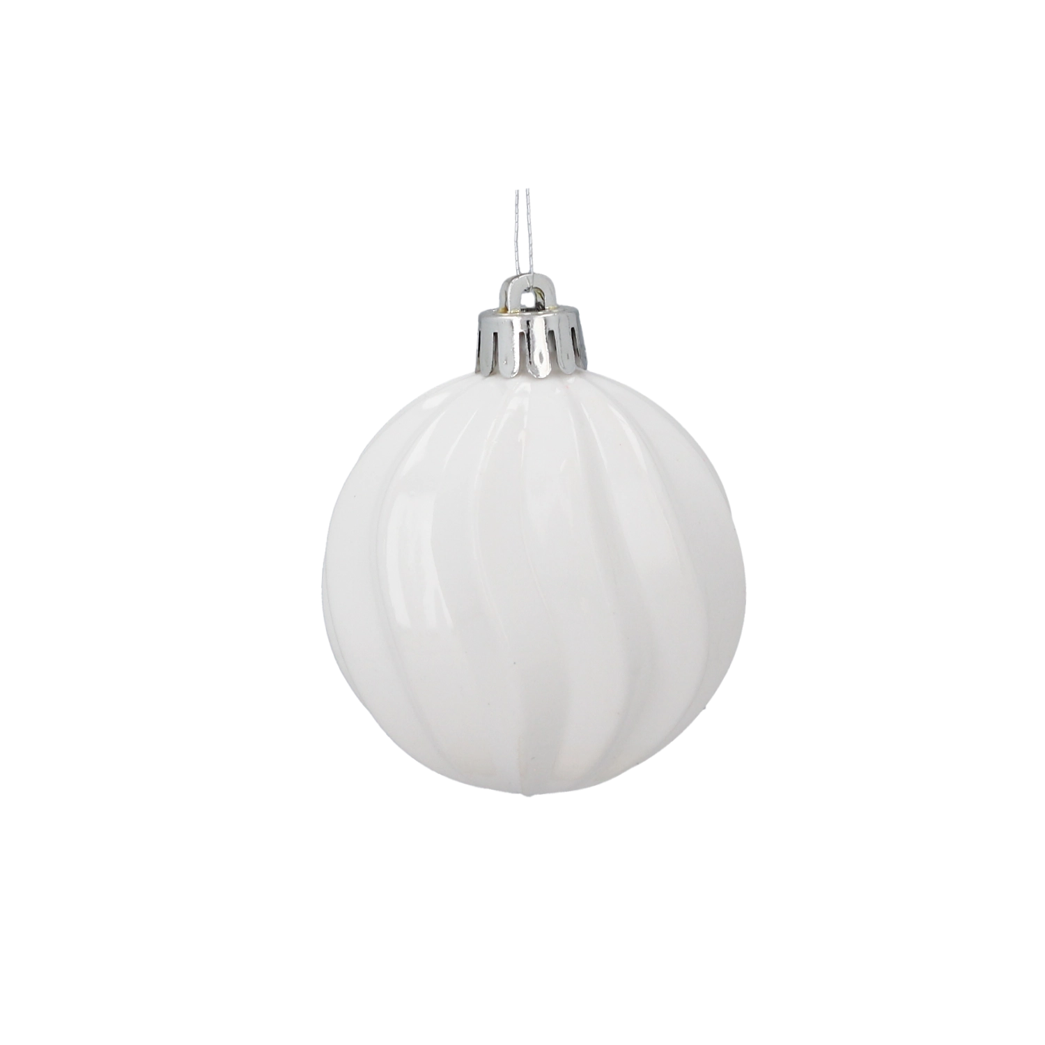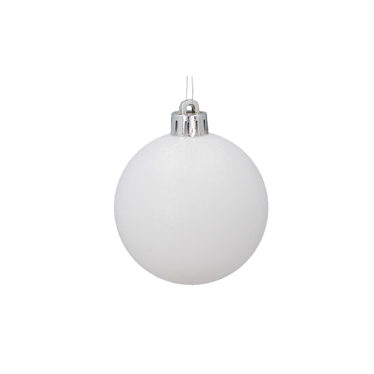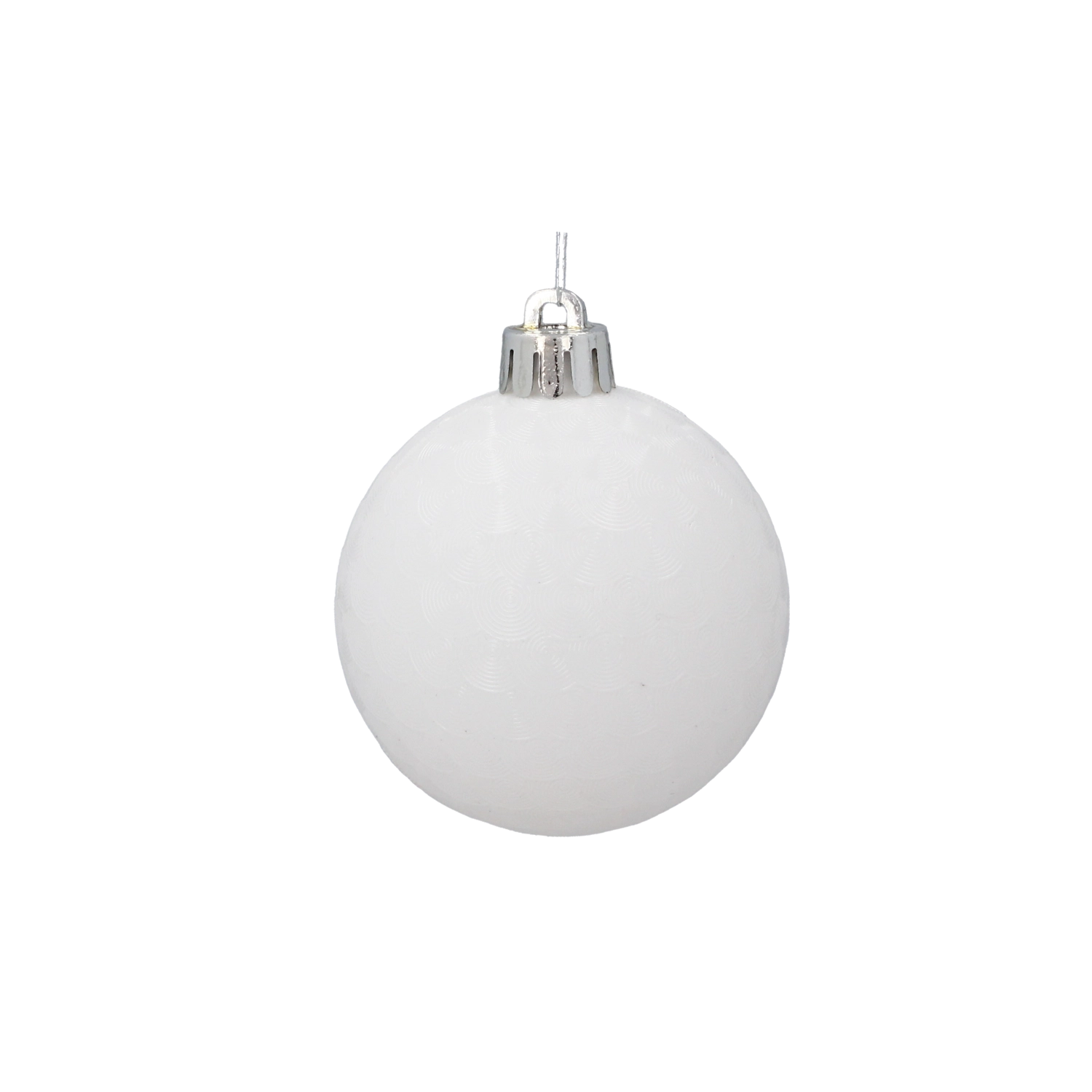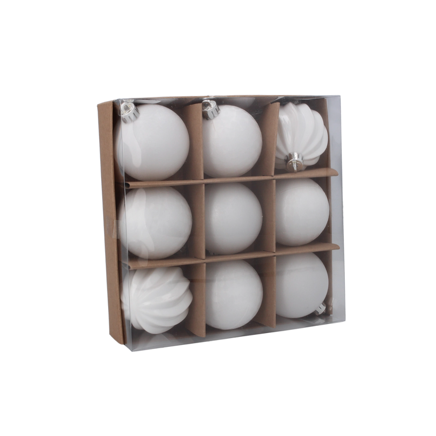 Ezek a fehér karácsonyi gömbök letisztult megjelenésükkel kiemelik a modern és a hagyományos dekorációt is. A könnyű és minőségi műanyag biztonságos felakasztást tesz lehetővé az ágak felesleges terhelése nélkül, és hosszú élettartamot biztosít ismételt használat mellett is.