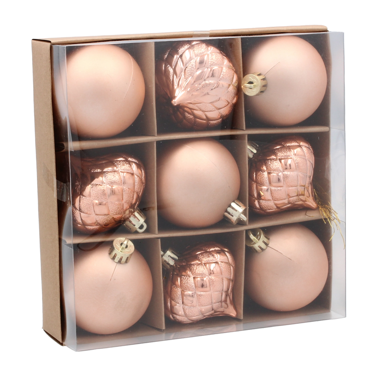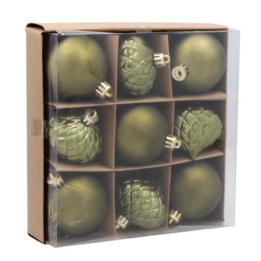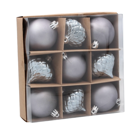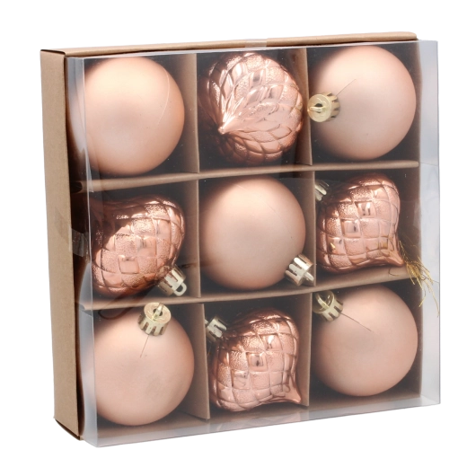 Ez a kiegyensúlyozott kollekció színek és textúrák harmóniáját hozza el klasszikus és modern karácsonyi dekorációkhoz egyaránt. A könnyű anyag megkönnyíti az ágakra akasztást, a masszív kialakításnak köszönhetően pedig a díszek gyakori használat mellett is szépek maradnak.