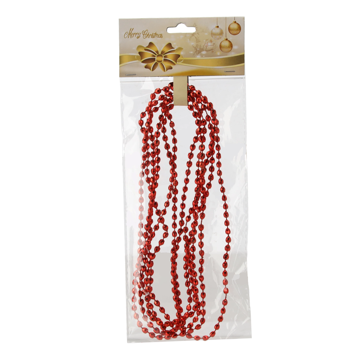 A gyöngyök piros, arany és ezüst színű, fényvisszaverő felülete gyönyörűen megfogja a fényt, és kifejező, ünnepi hatást ad a dekorációnak.