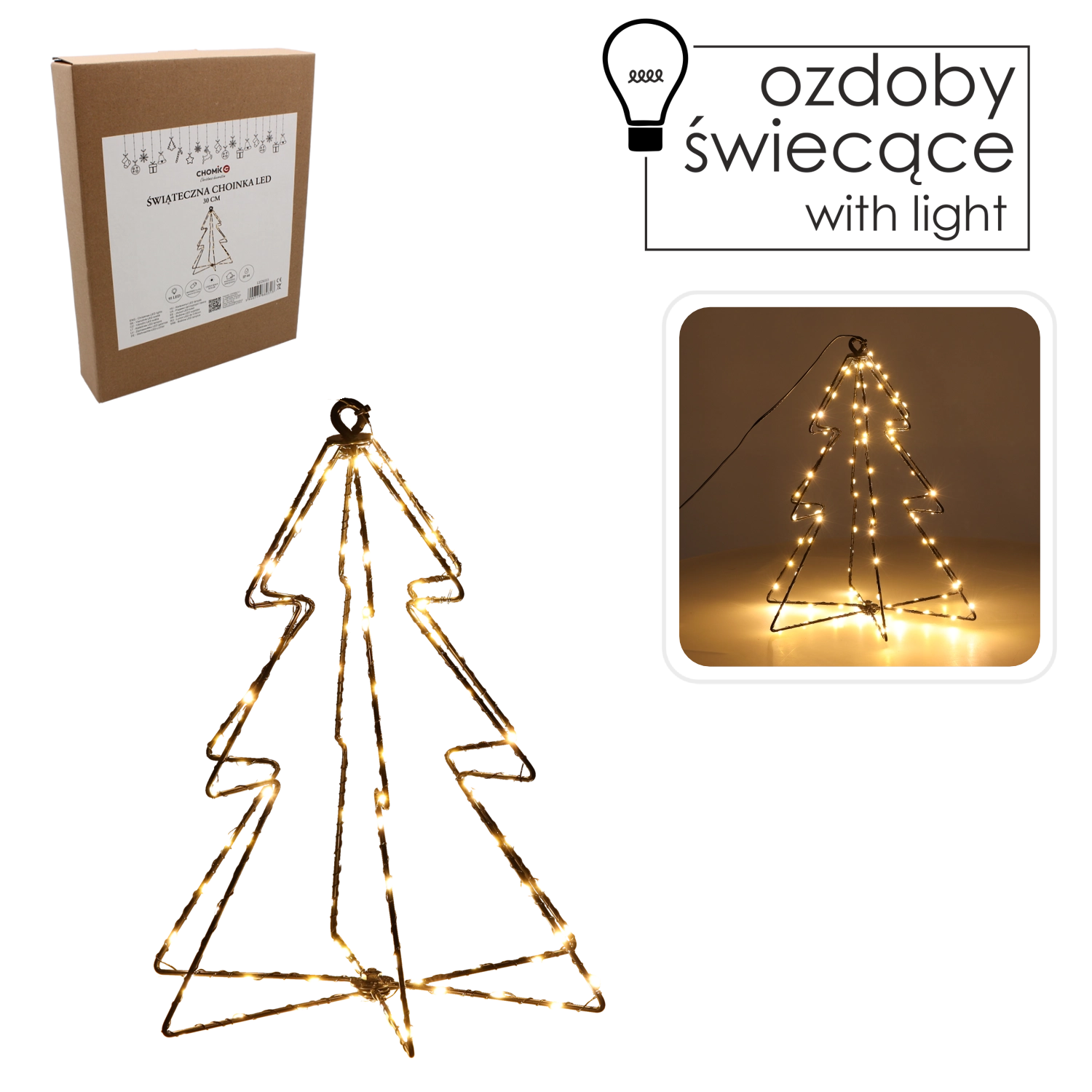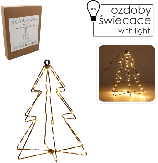 A minimalista drótból készült fácska beépített mikro LED-ekkel kellemes meleg árnyalattal ragyogja be otthonát. 95 egyenletesen elhelyezett dióda teremti meg a meghitt hangulatot, és díszíti az ünnepi dekorációt bonyolult szerelés nélkül. A stabil talp és a finom sziluett egyaránt illik modern és klasszikus enteriőrökbe.