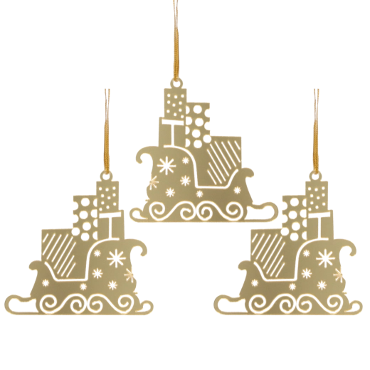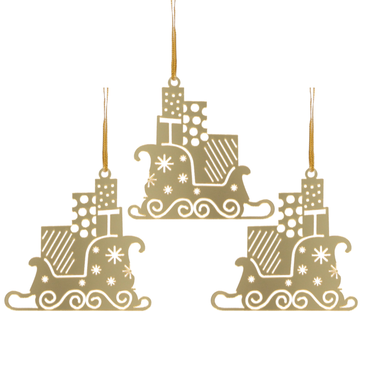 Nyűgözd le szeretteidet stílusos díszítéssel. A három arany, Mikulás szán formájú díszből álló szett ünnepi csillogást és eleganciát visz a belső terekbe. A könnyű anyag megkönnyíti a kezelést, míg a precíz kivitelezés hosszú élettartamot biztosít, hogy minden szezonban újra használhasd.