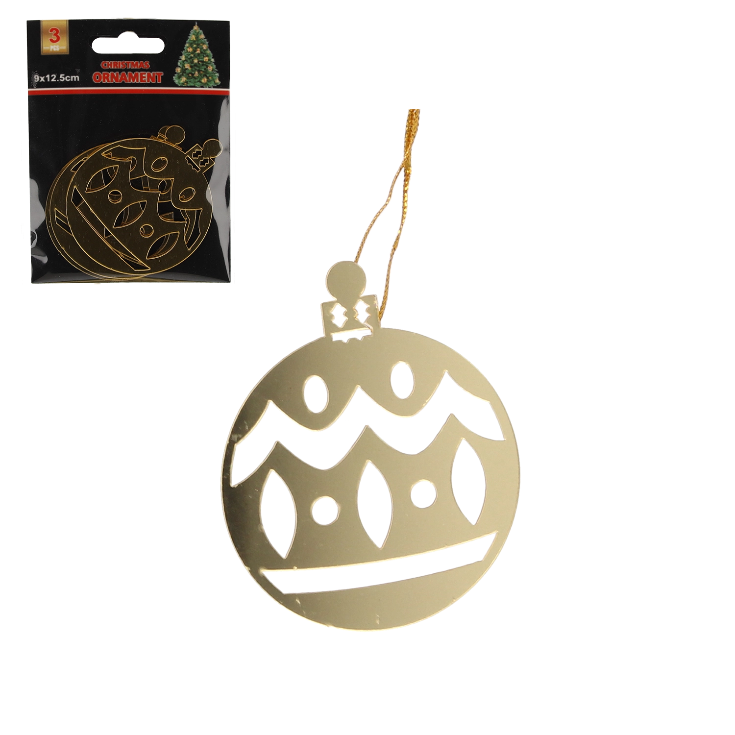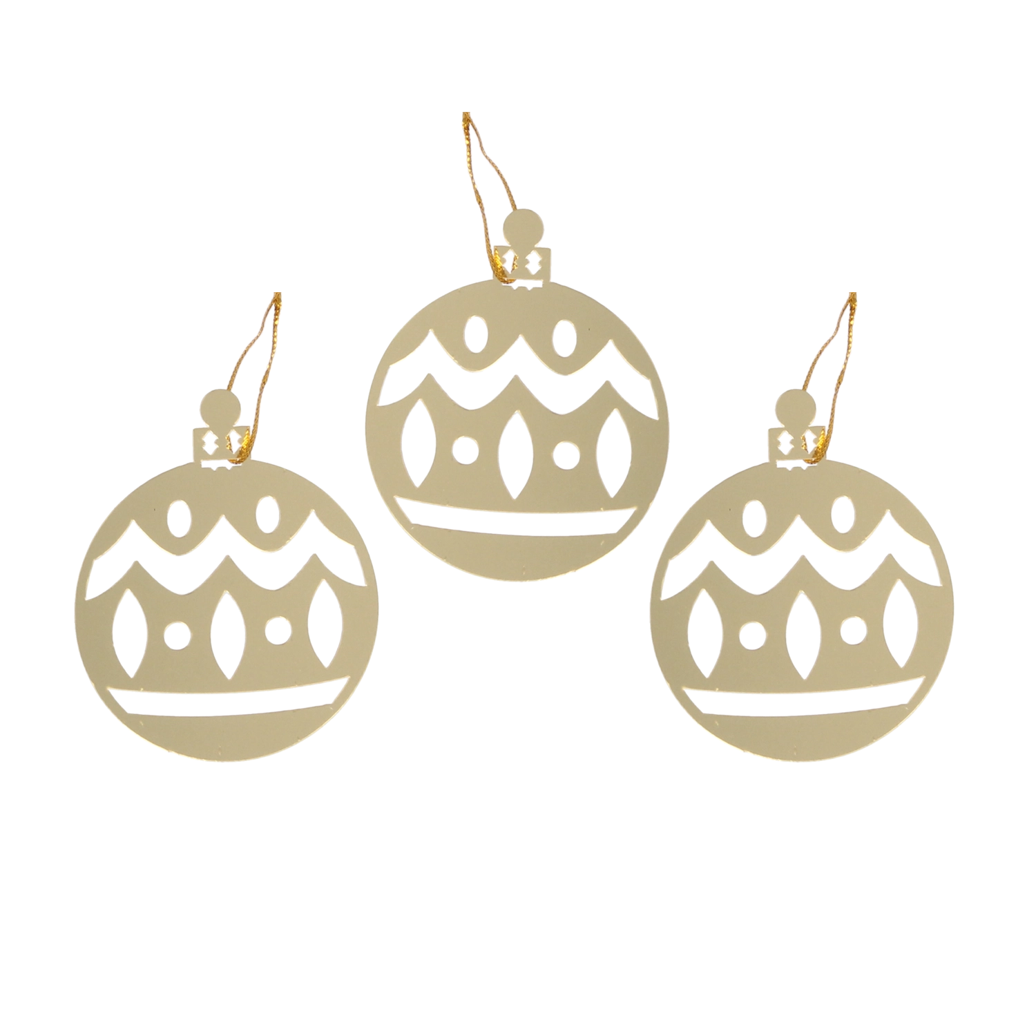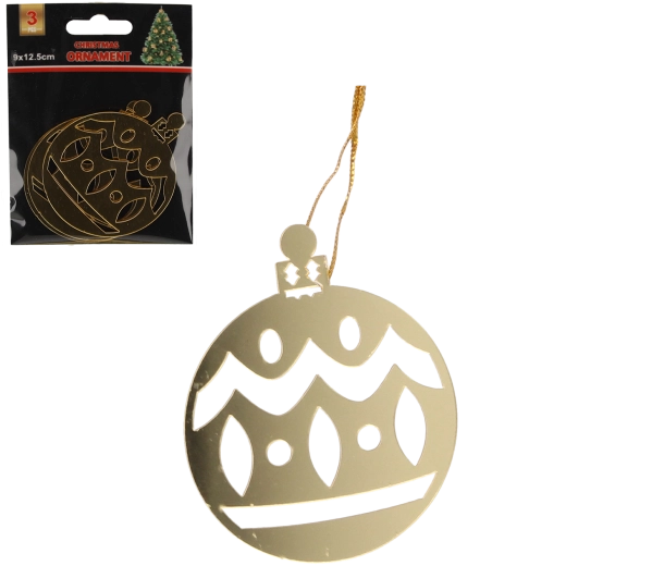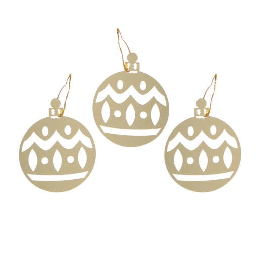 Arany karácsonyi gömbök kivágásokkal 8 × 6 cm, 3 db-os készlet