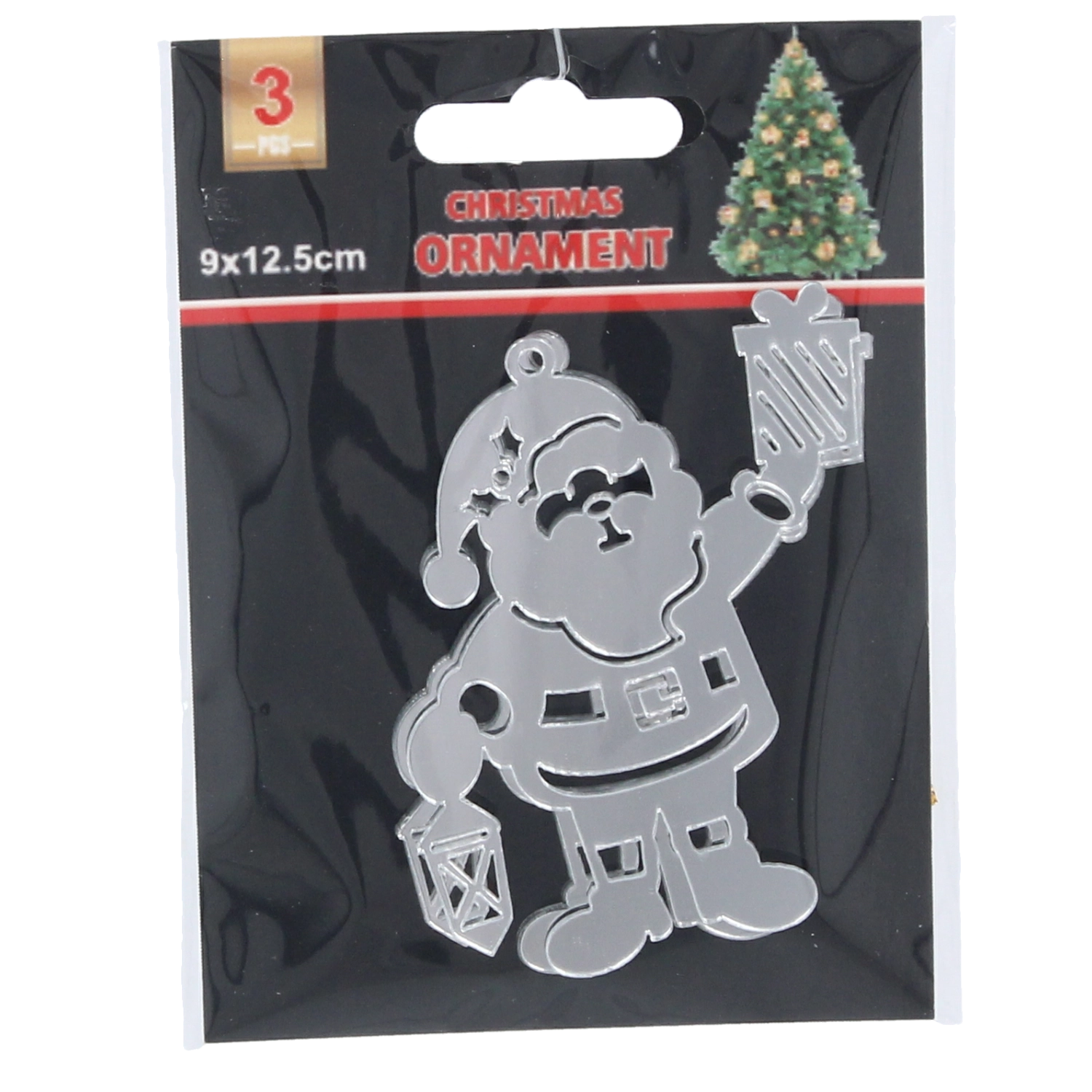 Ezüst Mikulás karácsonyi díszek szett, 3 db