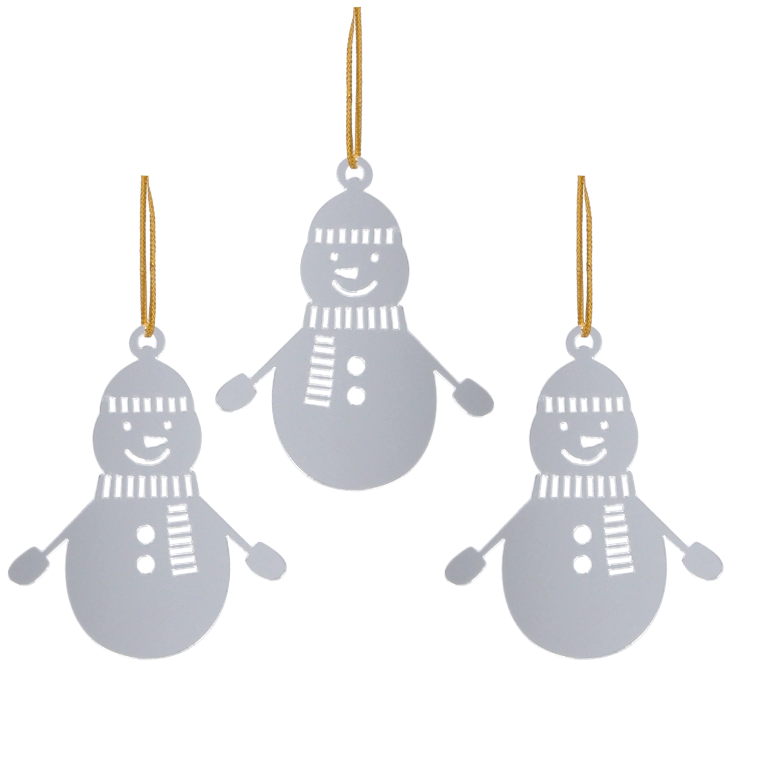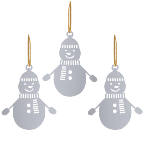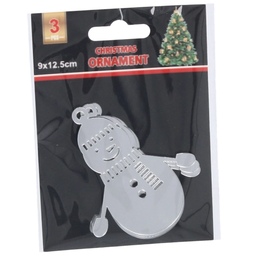 Ezüst hóember karácsonyi díszek szettje, 3 db