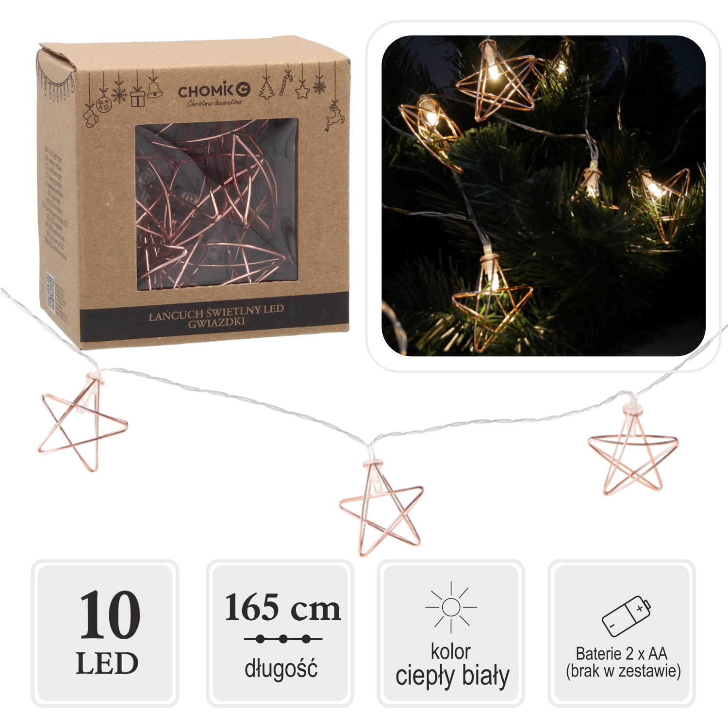 Az elegáns csillagos fényfüzér kellemes és otthonos hangulatot varázsol a nappaliba, hálószobába vagy a gyerekszobába. A meleg fehér fény megnyugtató hatású, és tökéletesen kiemeli a ünnepi, de akár egész éves dekorációt.