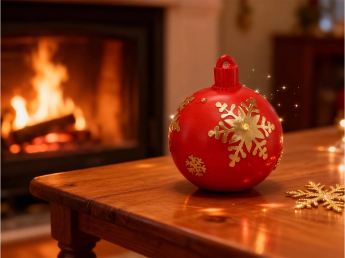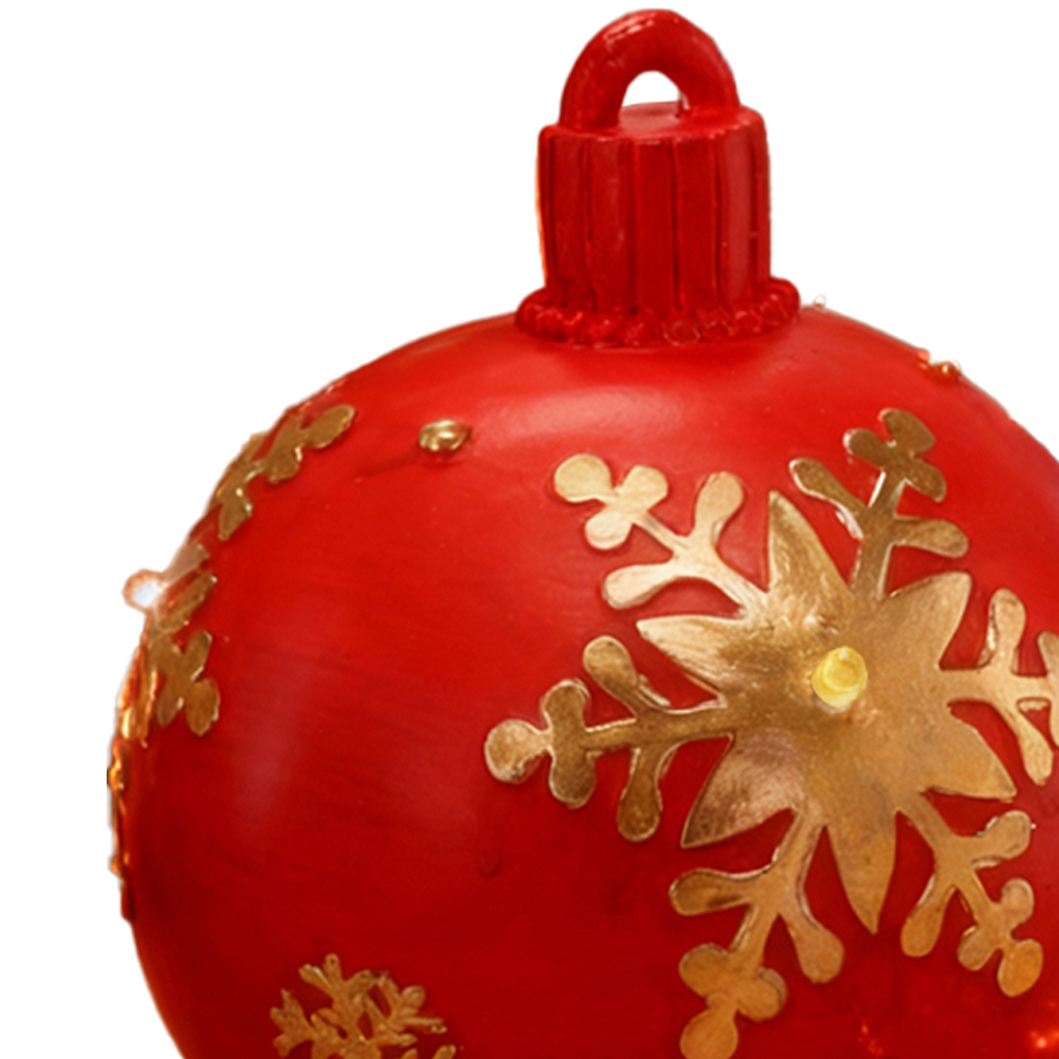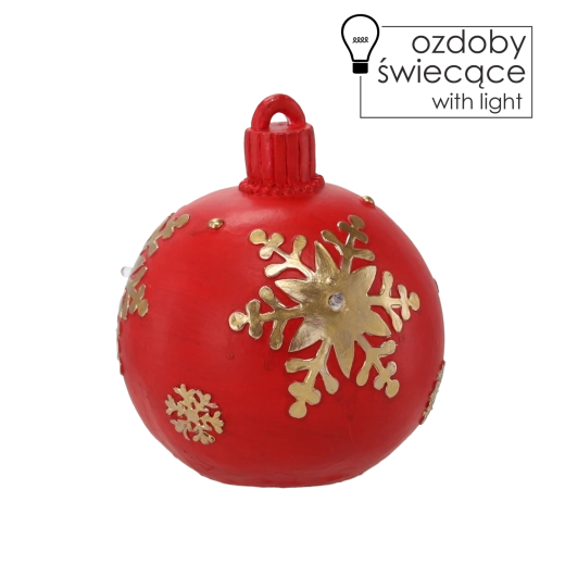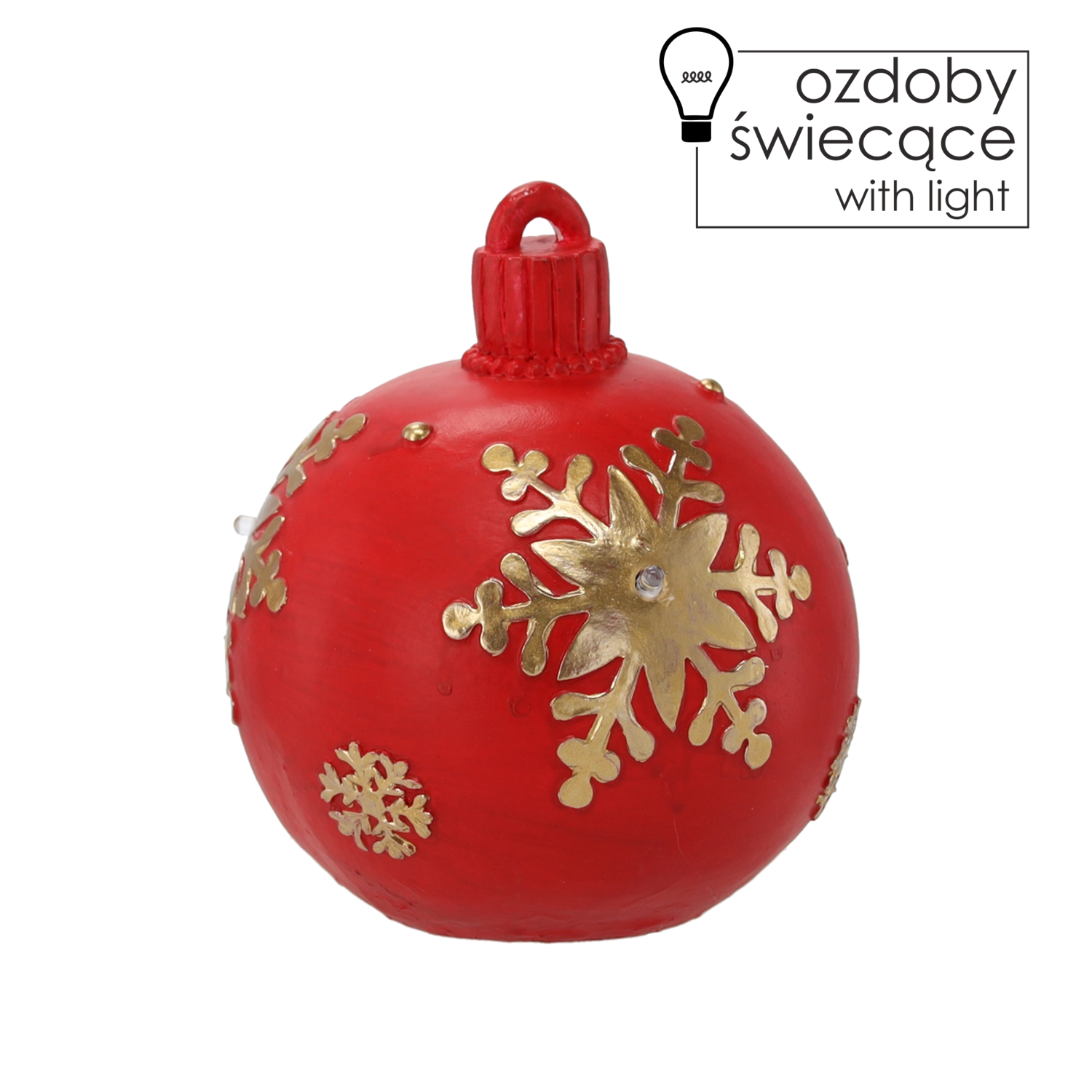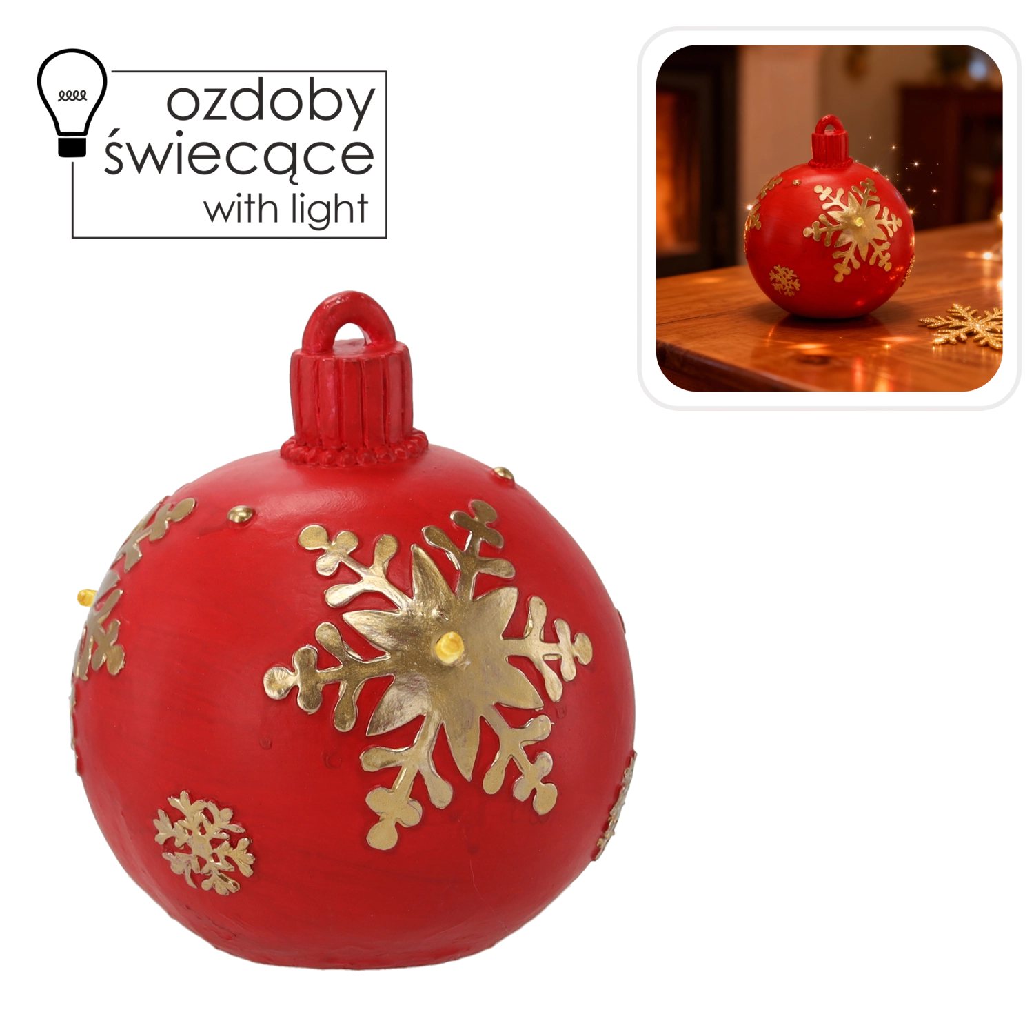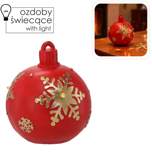 Ez az elegáns piros gömb integrált LED diódákkal varázslatos, lágy fényt áraszt, amely kiemeli az arany részleteket és fokozza az ünnepi hangulatot. Minőségi kivitelének és időtlen designjának köszönhetően könnyen kombinálható más dekorációkkal.