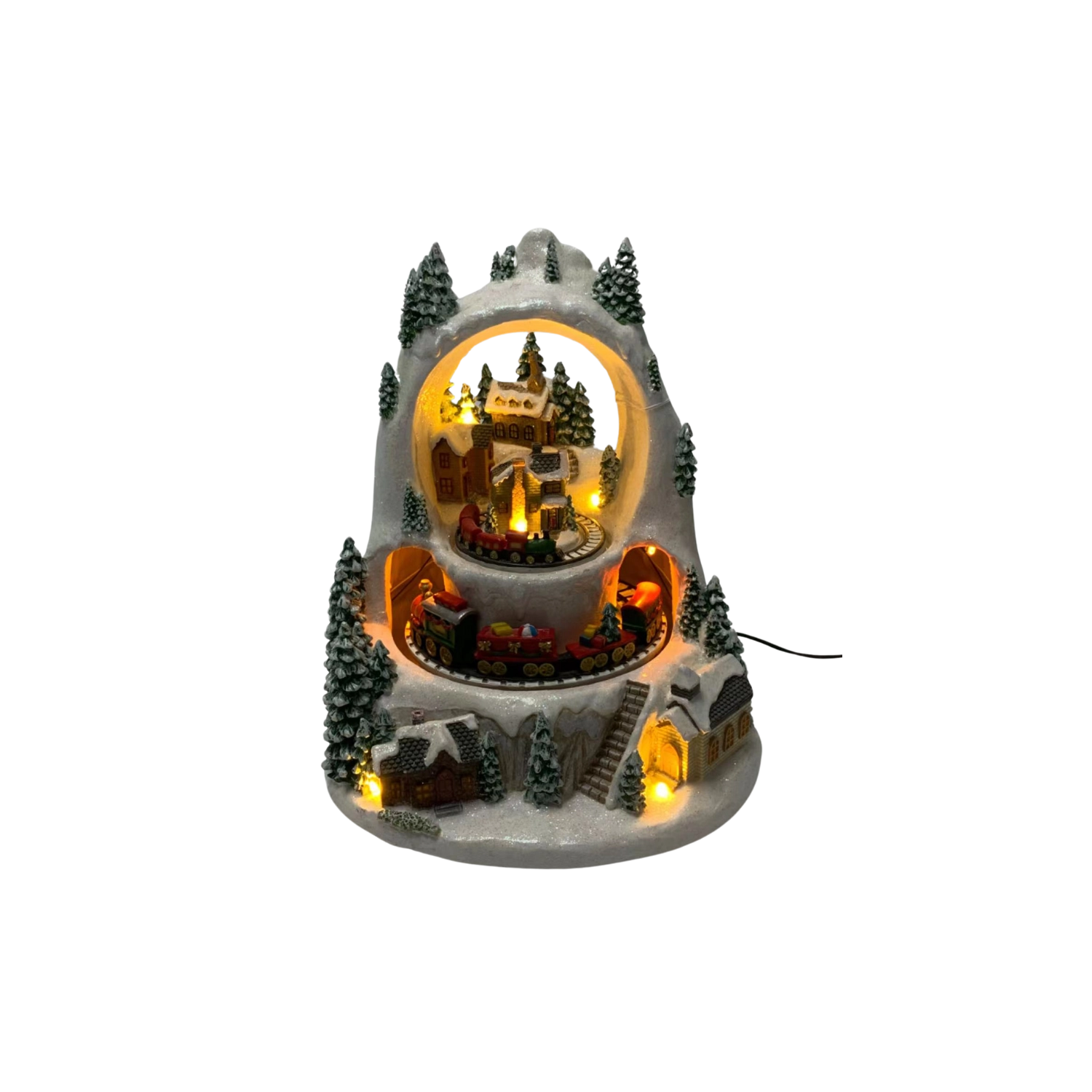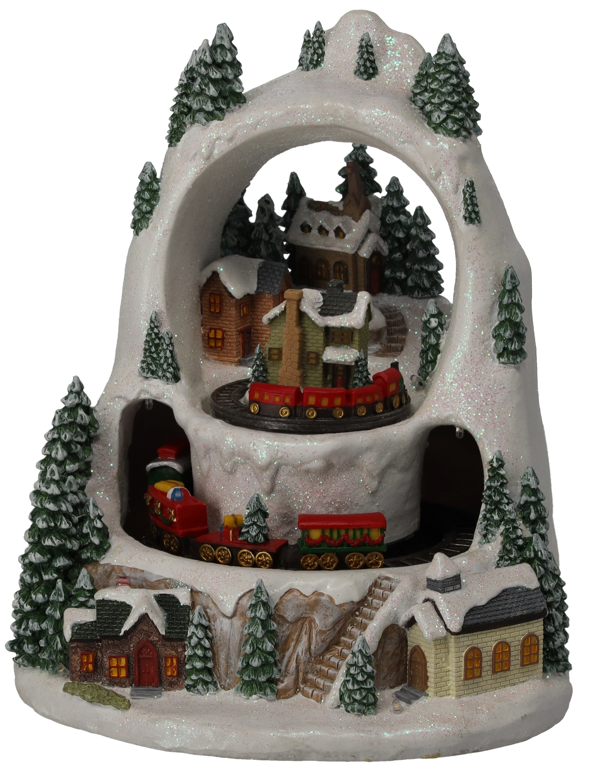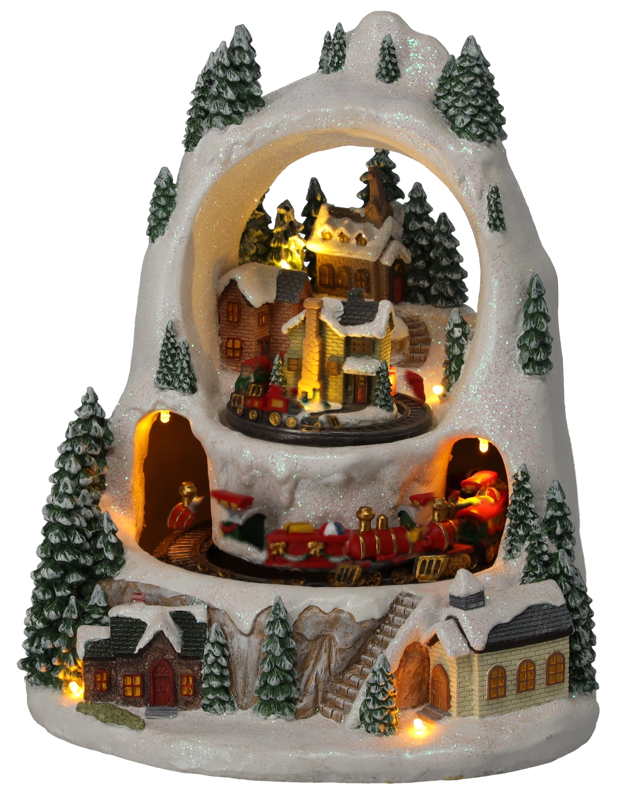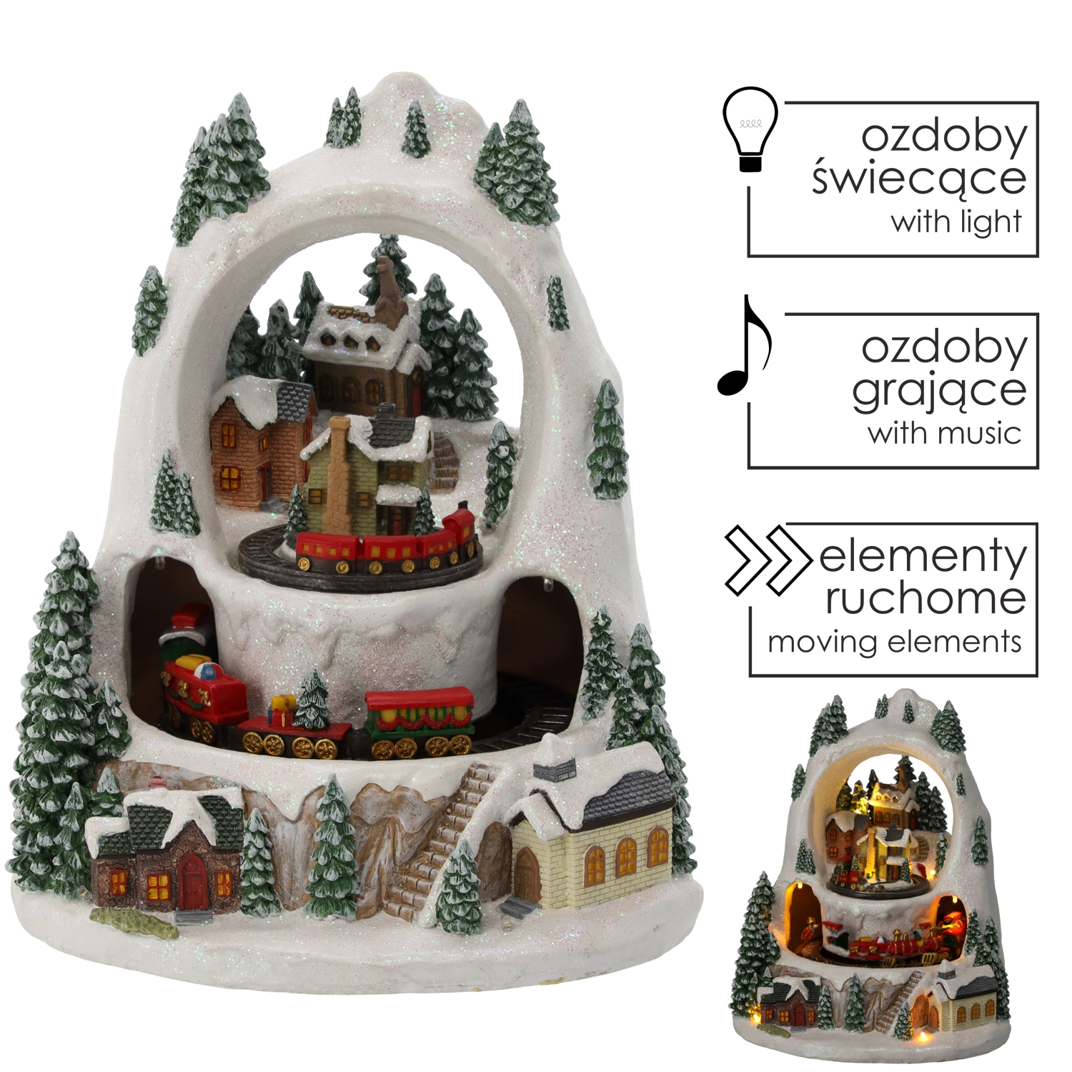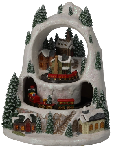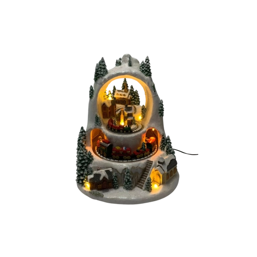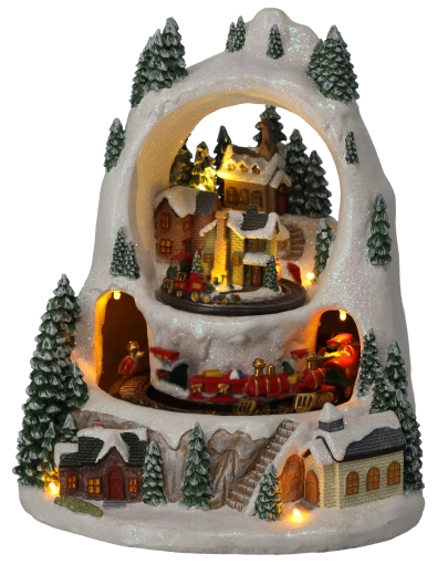 Varázsolj otthonodba egy kis téli csodát. A részletgazdag karácsonyi falu havas házikókkal és fákkal a két szinten köröző vonatok mozgásának, a kellemesen meleg LED világításnak és a klasszikus ünnepi dallamok lejátszásának lehetőségének köszönhetően kel életre. Választhatsz hanggal kísért módot, vagy csendes üzemet csak fénnyel és animációval.