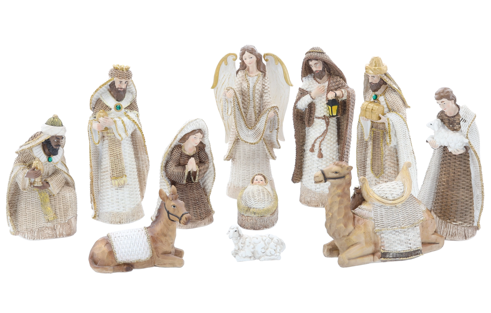 Ez a reprezentatedv ke9szlet tartalmazza a Szent Csale1dot, a he1rom kire1lyt, egy angyalt, pe1sztort e9s e1llatokat, edgy kf6nnyede9n megalkothatja a teljes betlehemet a komf3don, kandallf3n vagy bemutatf3asztalon. A polirezin nagyfokfa ellene1llf3ke9pesse9get e9s szedne1llandf3se1got biztosedt, edgy a dekore1cif3 tf6bb szezonon e1t megf5rzi sze9pse9ge9t.