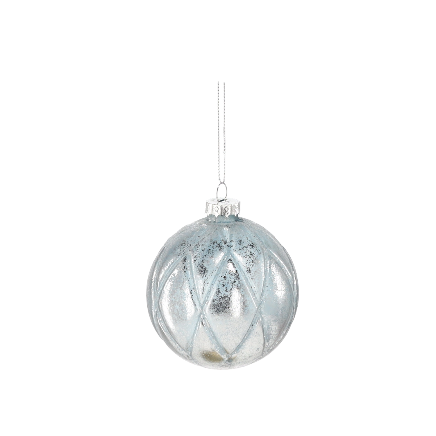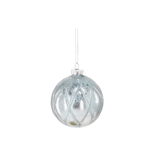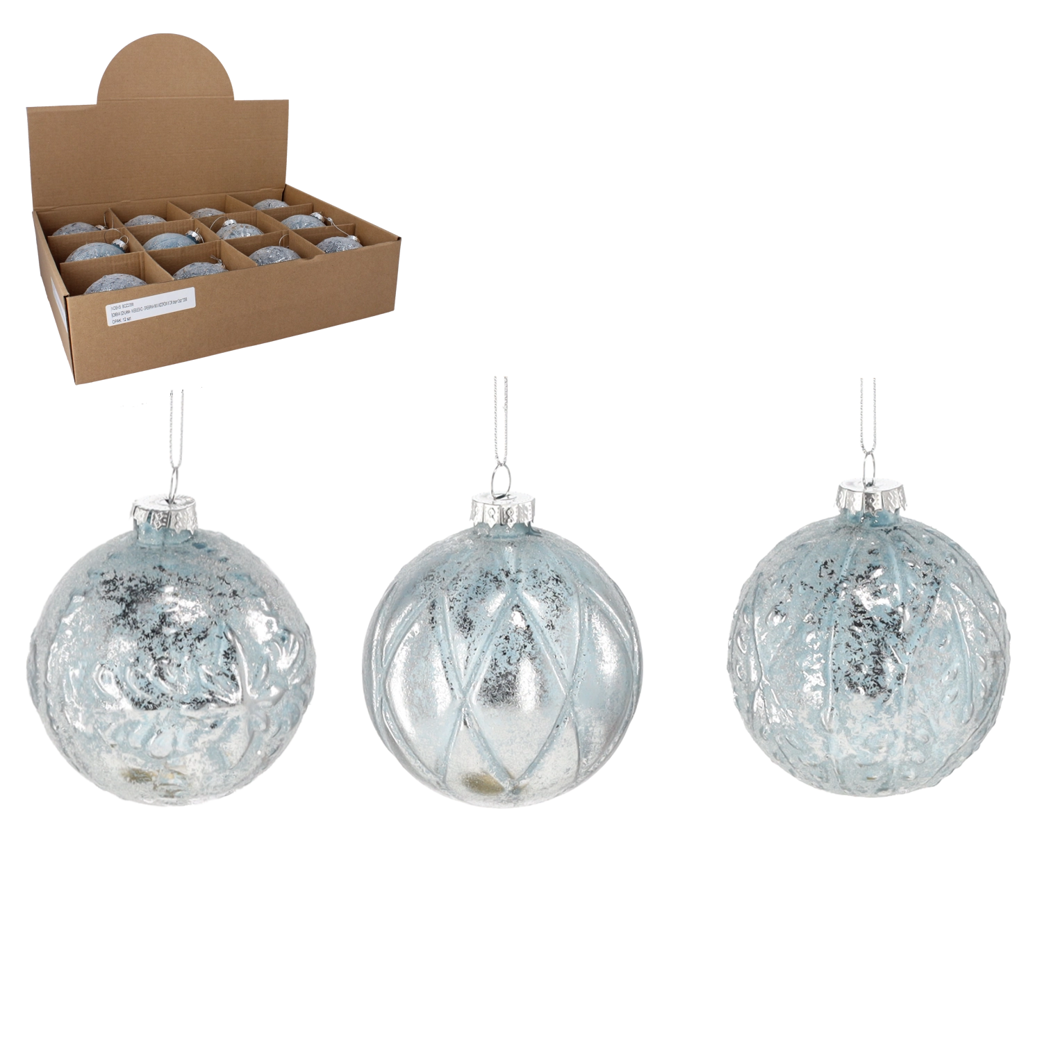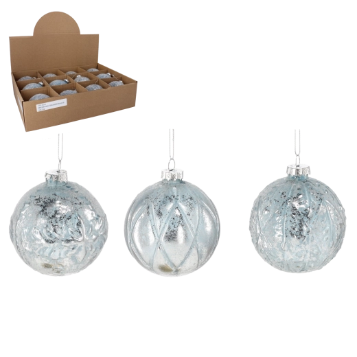 A 12 darabos üveg gömbkészlet kék és ezüst színkombinációja fagyos ragyogást és visszafogott csillogást varázsol a fára. A kézi díszítés változatos mintái – a finom dombor motívumoktól a gyémántos struktúrákig – egyedülálló megjelenést adnak minden dísznek, miközben elegánsan egységes összhatást teremtenek.