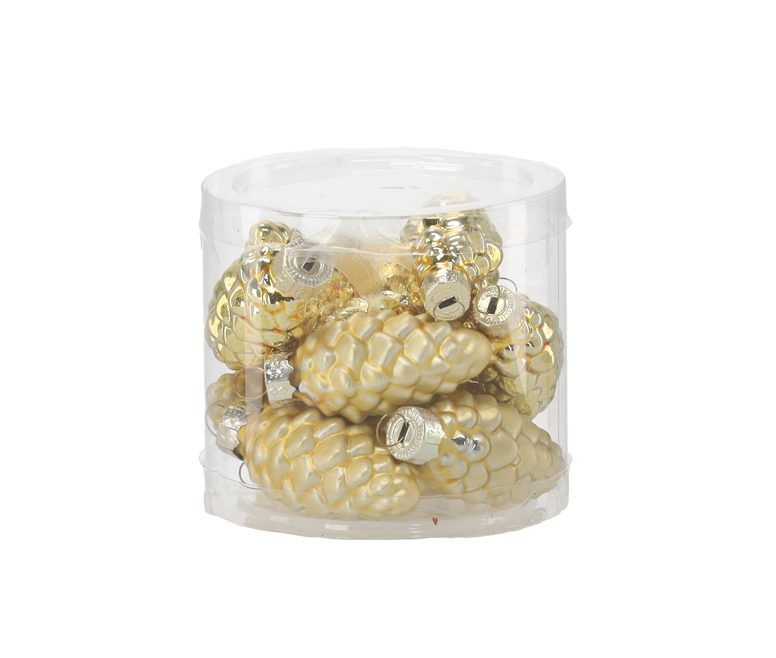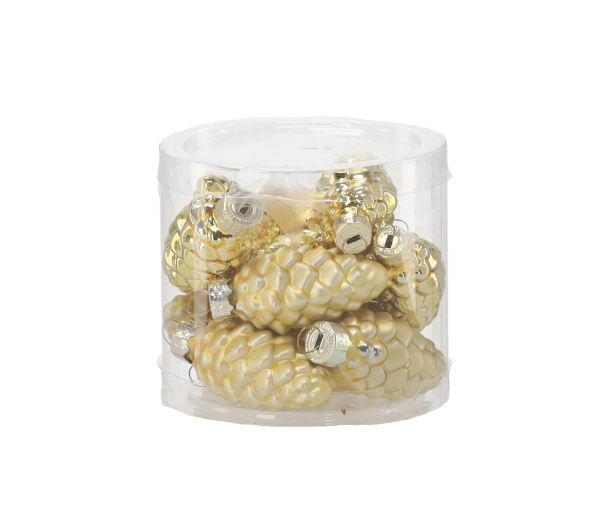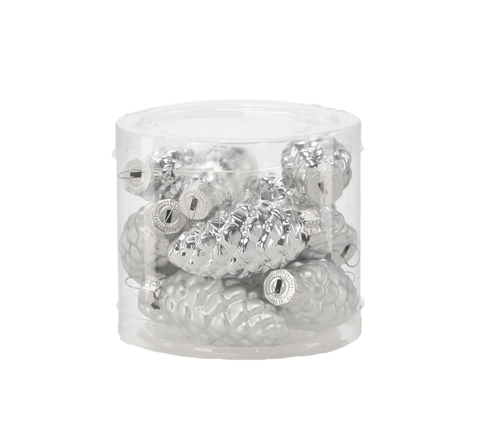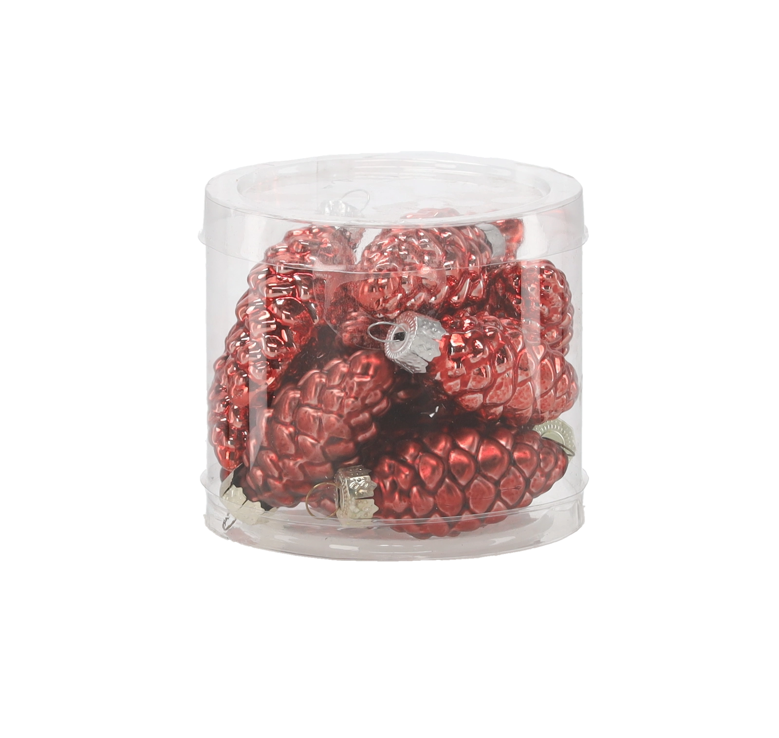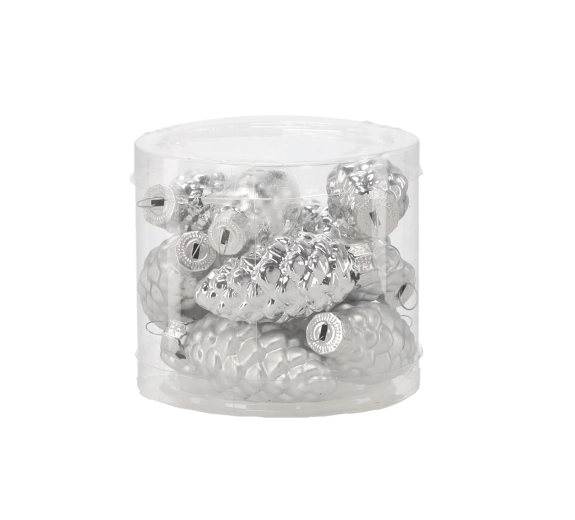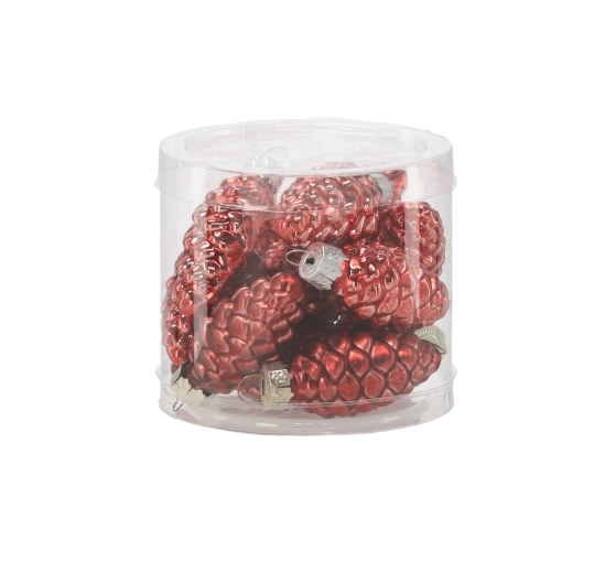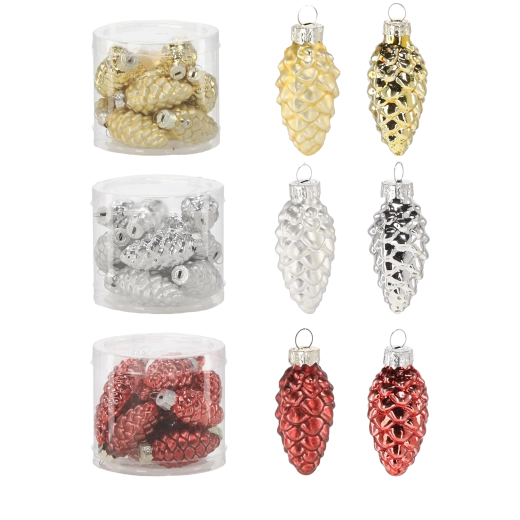 Üveg karácsonyi díszek – tobozok, 12 db-os készlet
