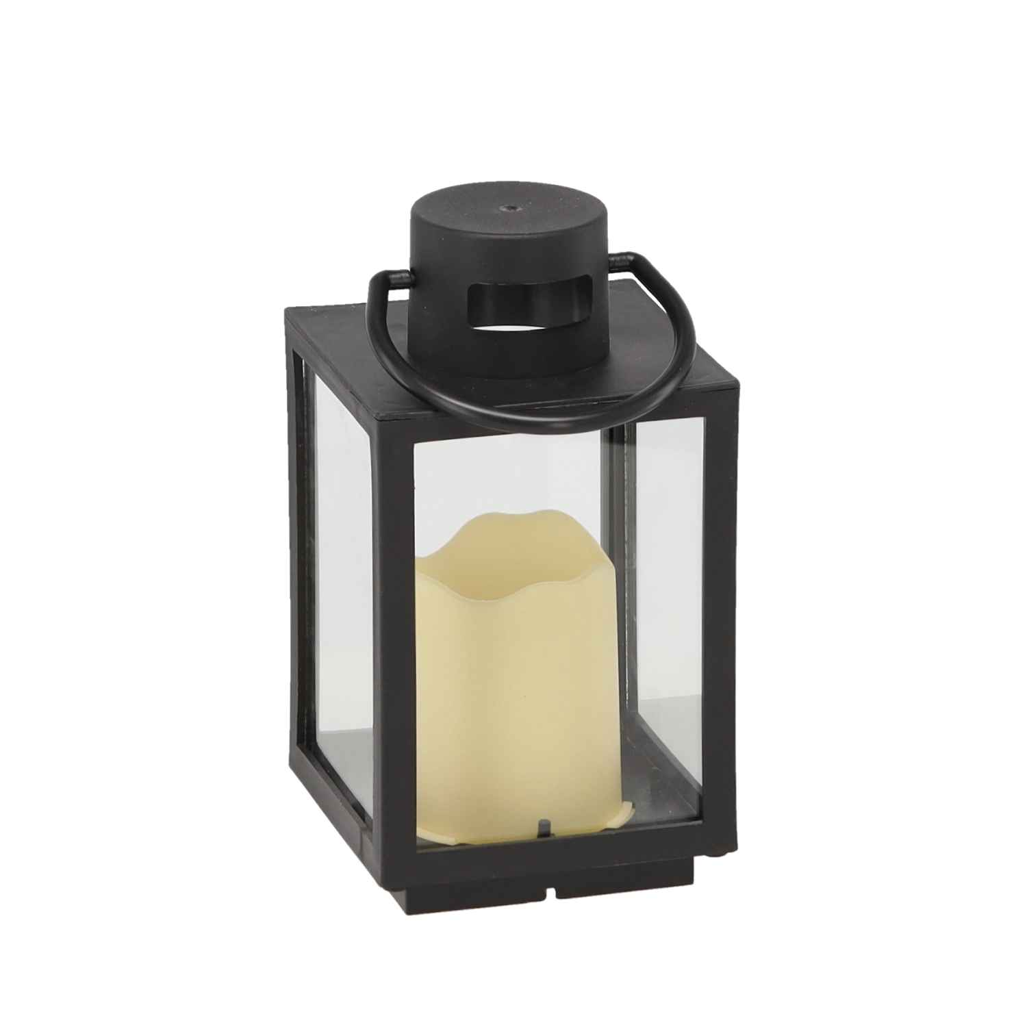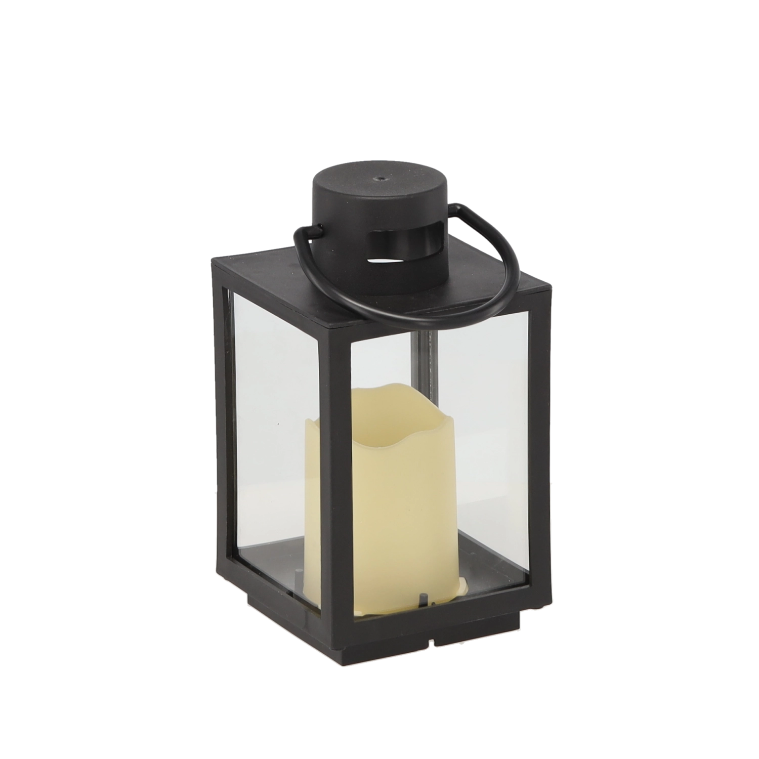 A lámpásban lévő krém színű LED gyertya meleg fényt áraszt füst, korom és tűzveszély nélkül – tökéletes a nyugodt téli estékhez és a mindennapi dekorációhoz.
