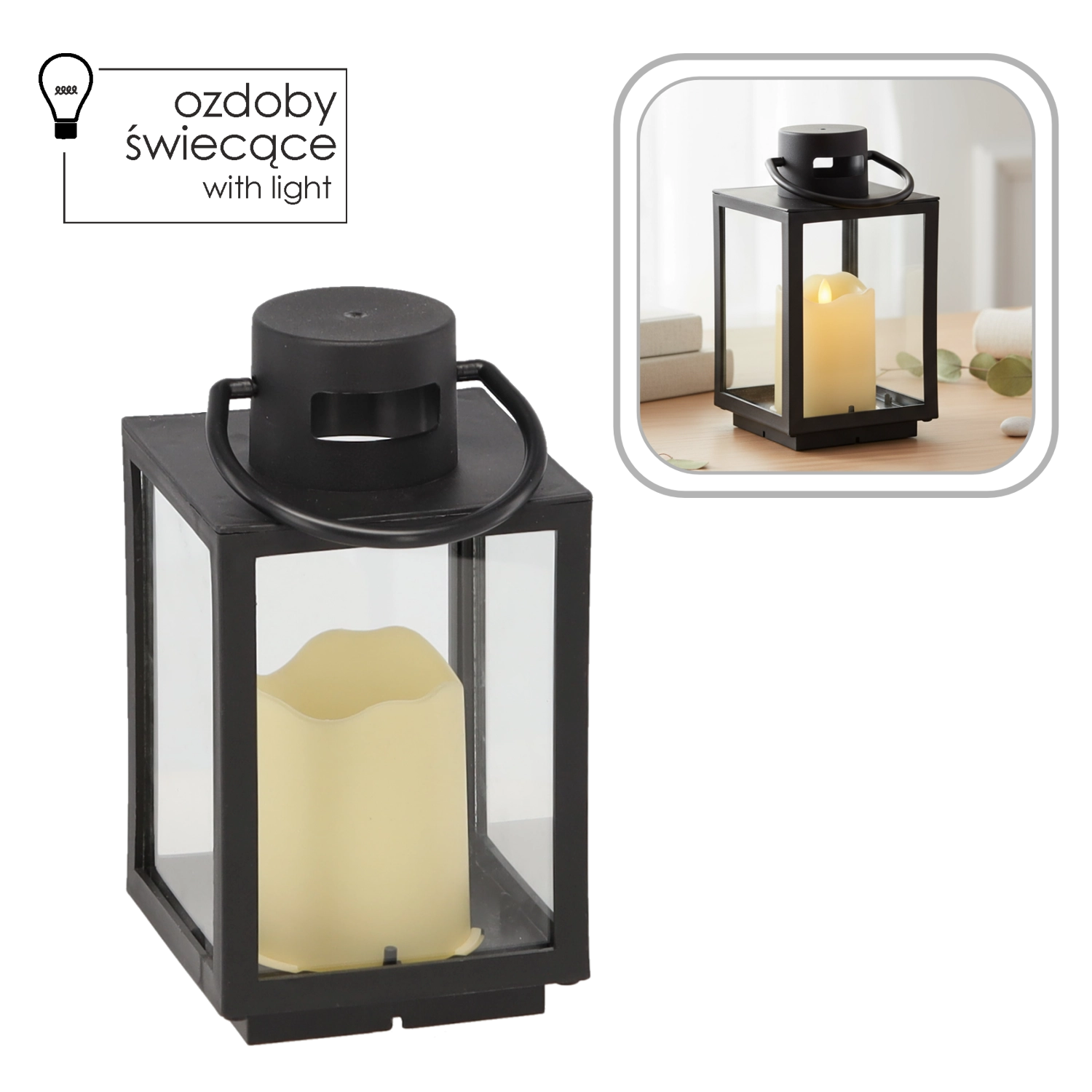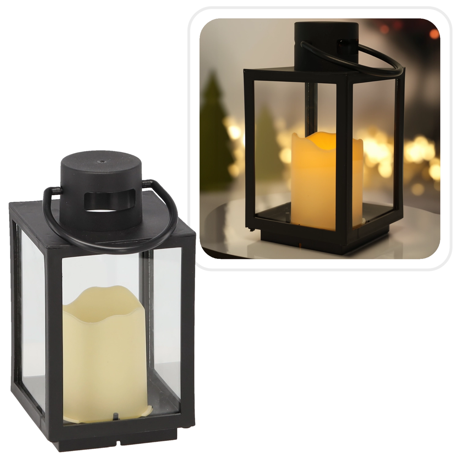 Ez a stílusos, fekete fémvázas, tiszta üveges karácsonyi lámpás meleg és kellemes fényt biztosít, amely szépen kiegészíti az ünnepi díszítést és az egész éves dekorációt is. Belül krém színű LED gyertya gondoskodik a biztonságos, energiatakarékos és karbantartásmentes világításról.