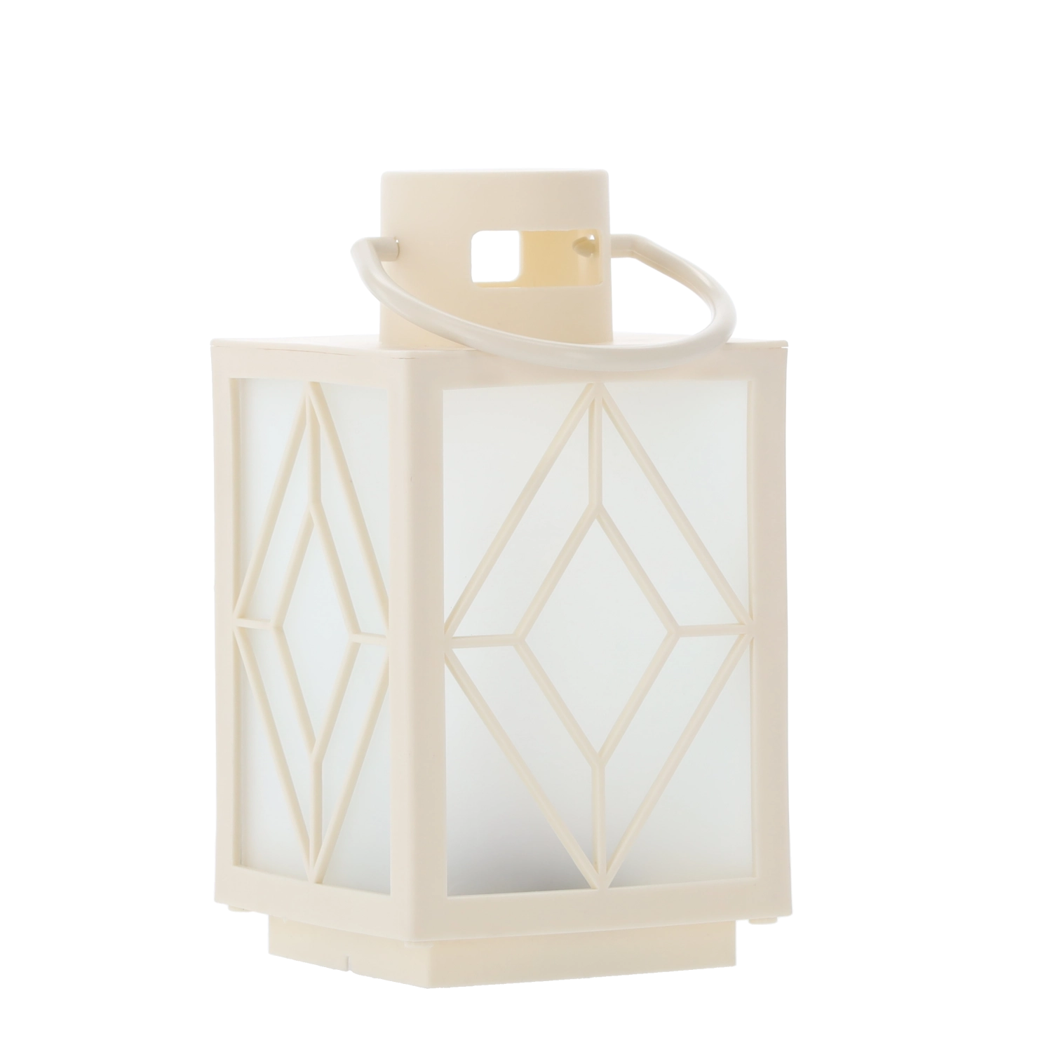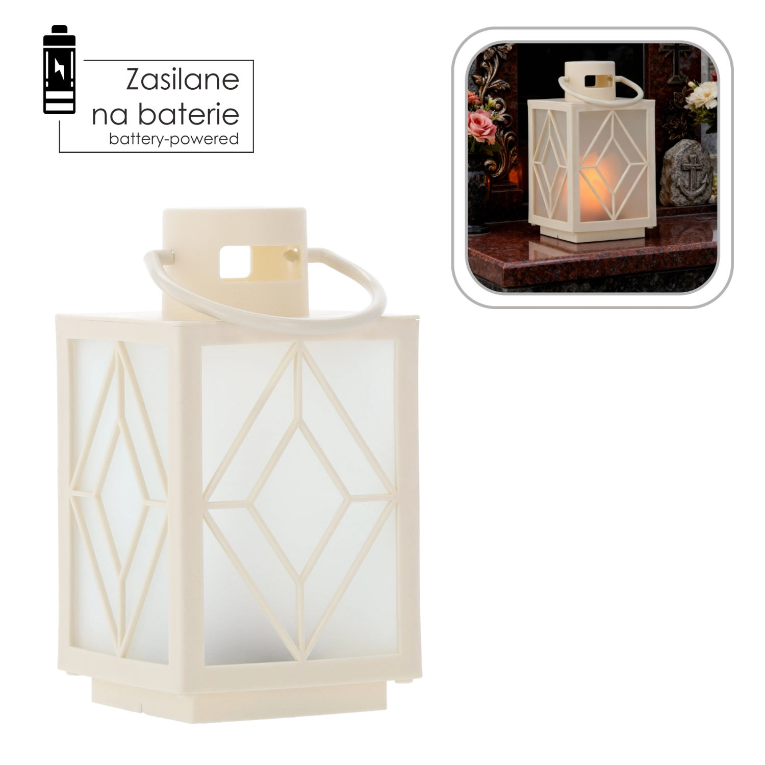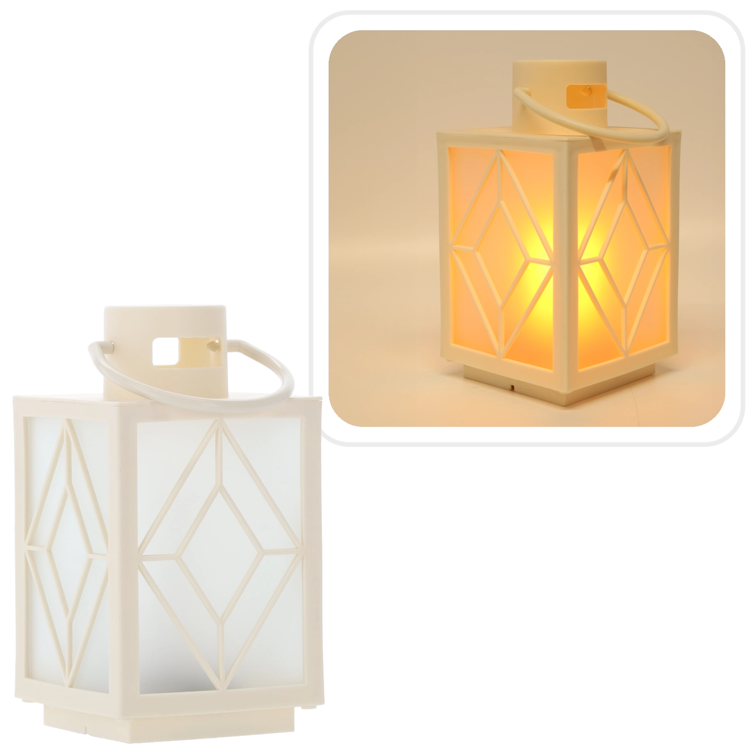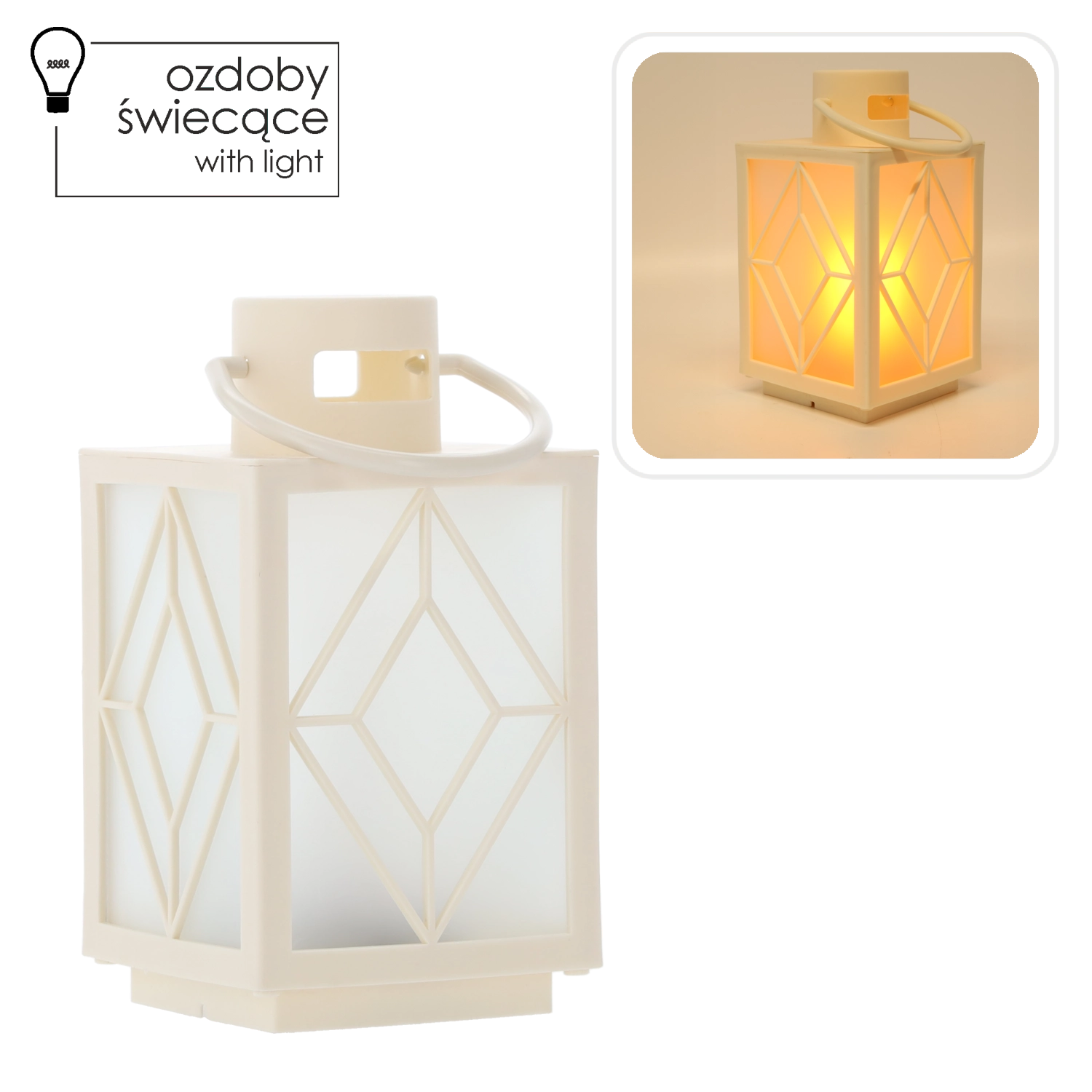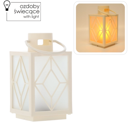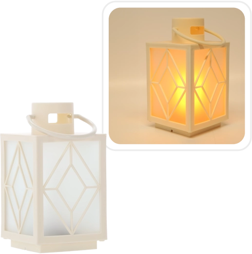 Díszítse otthonát finom, meleg fénnyel. A fehér, dekoratív lampion fagyos hatású betétekkel és geometrikus mintával kellemesen szórt, gyertyát idéző világítást ad, füst és viasz nélkül. Ideális adventi dekorációhoz, esti relaxáláshoz vagy ünnepi terítéshez.