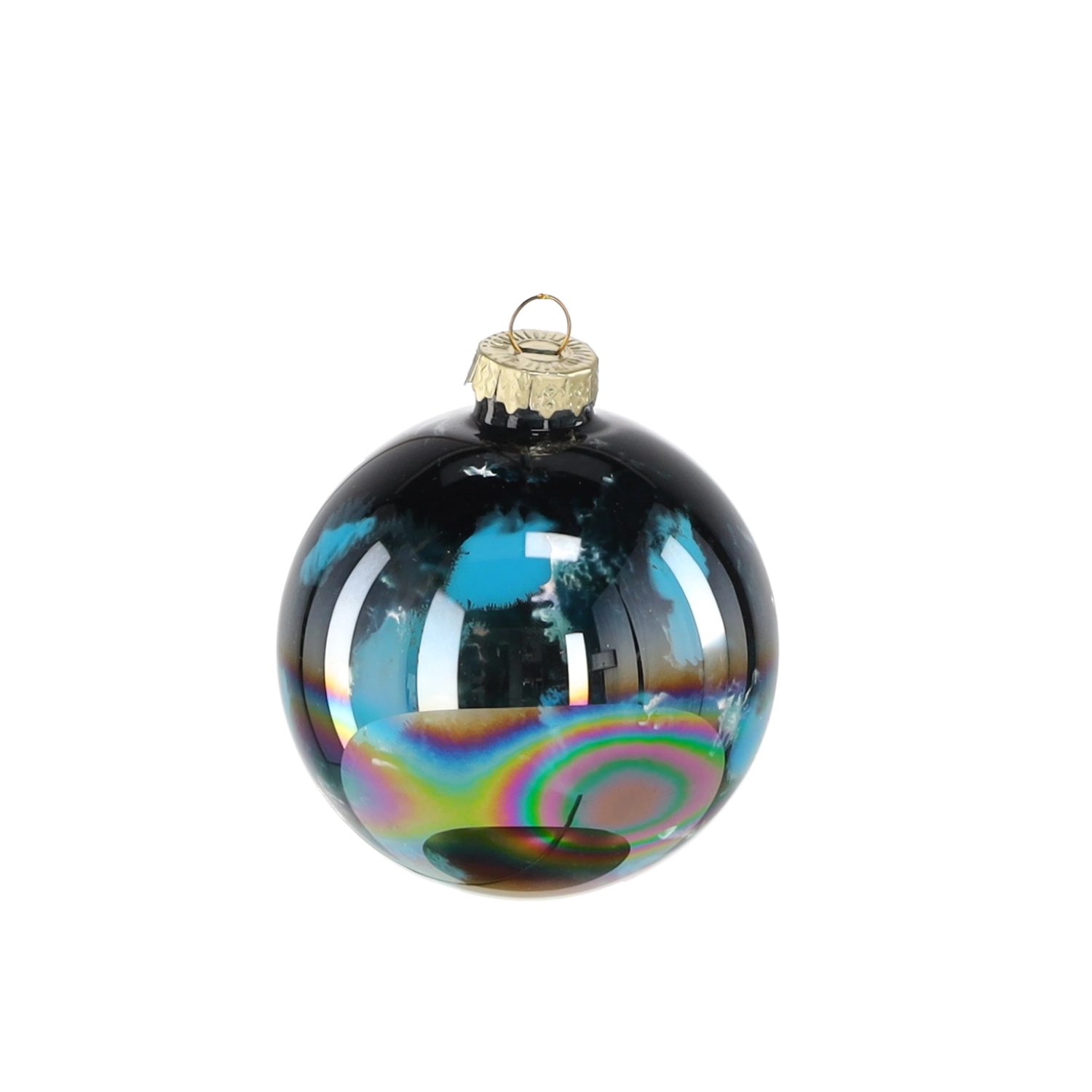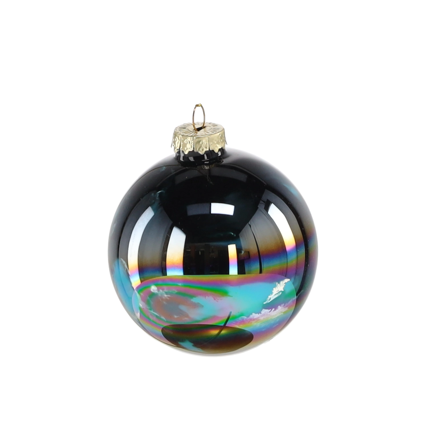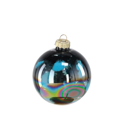 Ezek az üveg karácsonyi díszek igényes kidolgozásukkal és tartósságukkal tűnnek ki. Az egyedi benzines hatásnak köszönhetően a felületen finom, irizáló színátmenetek jelennek meg, amelyek kiemelik a karácsony varázslatos hangulatát, és könnyedén kombinálhatók más, modern vagy klasszikus stílusú dekorációkkal.