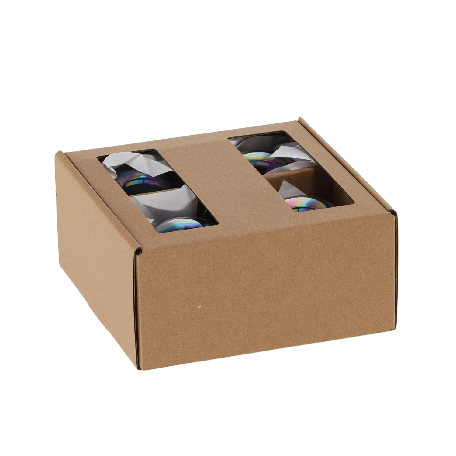 Adj modern stílust a fádnak négy darab, 8 cm átmérőjű üveggömbből álló szettel, benzines (irizáló) hatással. Szivárványos fényjátékuk és simára csiszolt, magasfényű felületük gyönyörűen veri vissza a fényt, így elegáns, designos megjelenést kölcsönöz minden ünnepi dekorációnak.