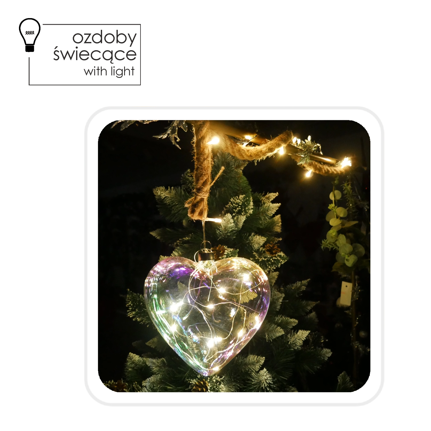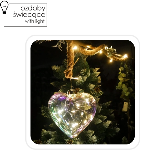 Ez az elegáns, szívalakú üvegdekoráció azonnal kellemes légkört teremt bármely belső térben. Az átlátszó üveg holografikus hatása szépen veri vissza a fényt, és 10 meleg fehér LED-del kombinálva finom, meghitt ragyogással világítja be a helyiséget.