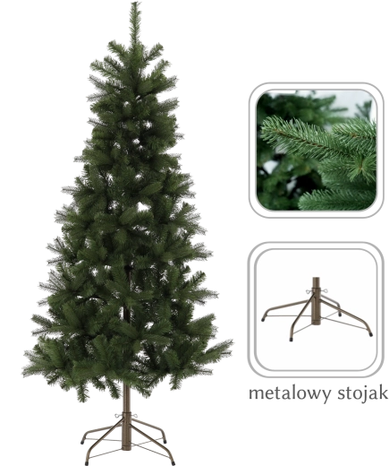 Teremtsen ünnepi hangulatot kompromisszumok nélkül. Ez a 210 cm magas és körülbelül 110 cm széles műfenyő sűrű, élethű formájú ágakkal készül minőségi PVC-ből. Az élénkzöld szín az élő fa benyomását kelti, és hosszú éveken át megőrzi szépségét.