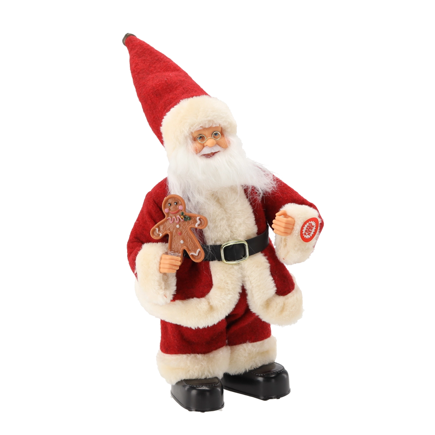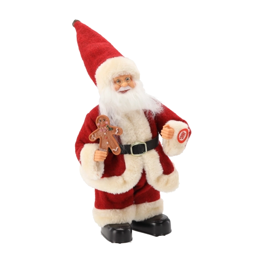 A figura részletgazdag kidolgozású: dús fehér szakáll, puha prémes szegélyek, fekete öv és csizma, a kezében mézeskalács – mindez hiteles összhatást kelt. Kompakt, 30 cm-es méretének köszönhetően ideális a asztalra, komódra, recepcióra vagy üzletkirakatba.