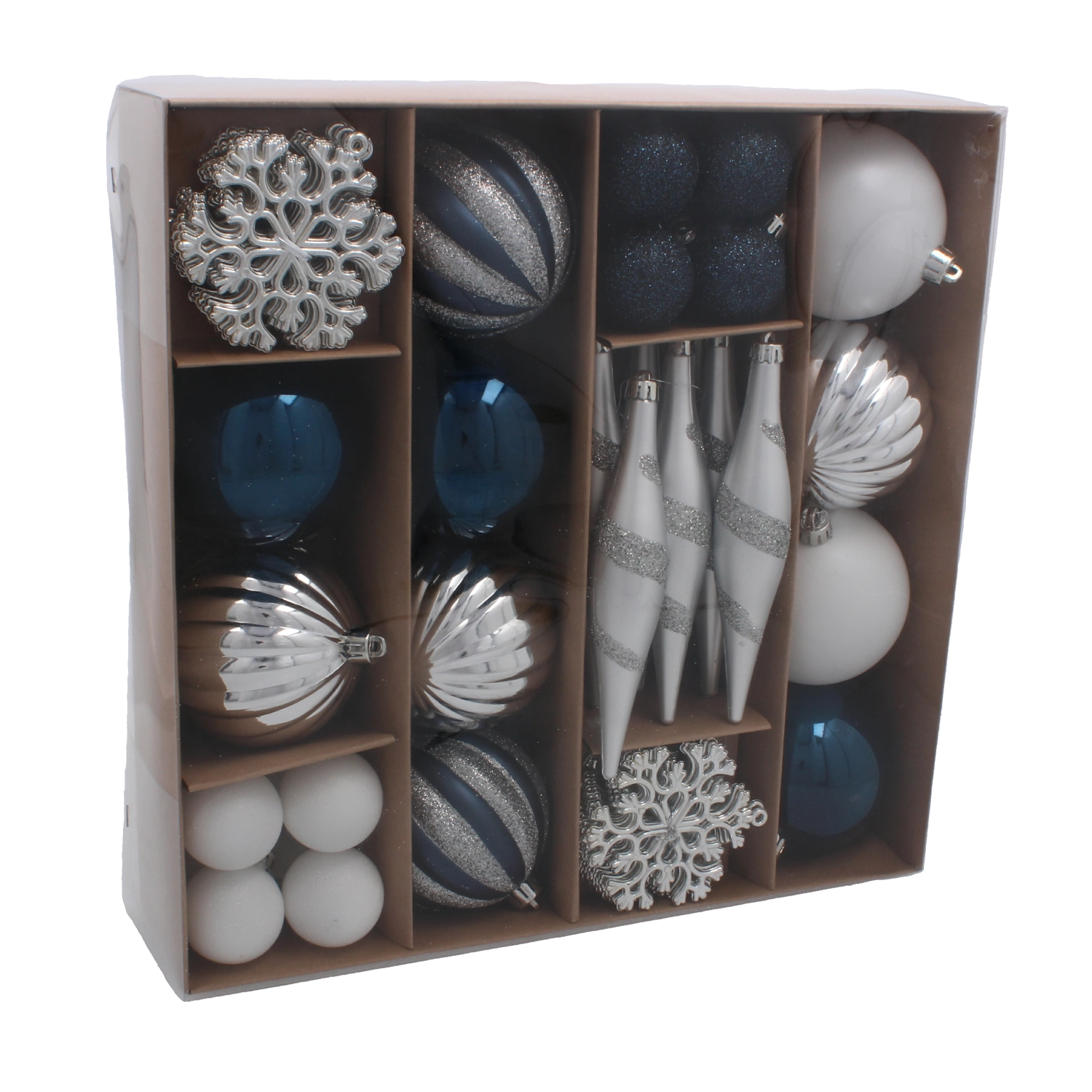 50 darabos karácsonyfadísz-készlet tengerészkék és ezüst színekben