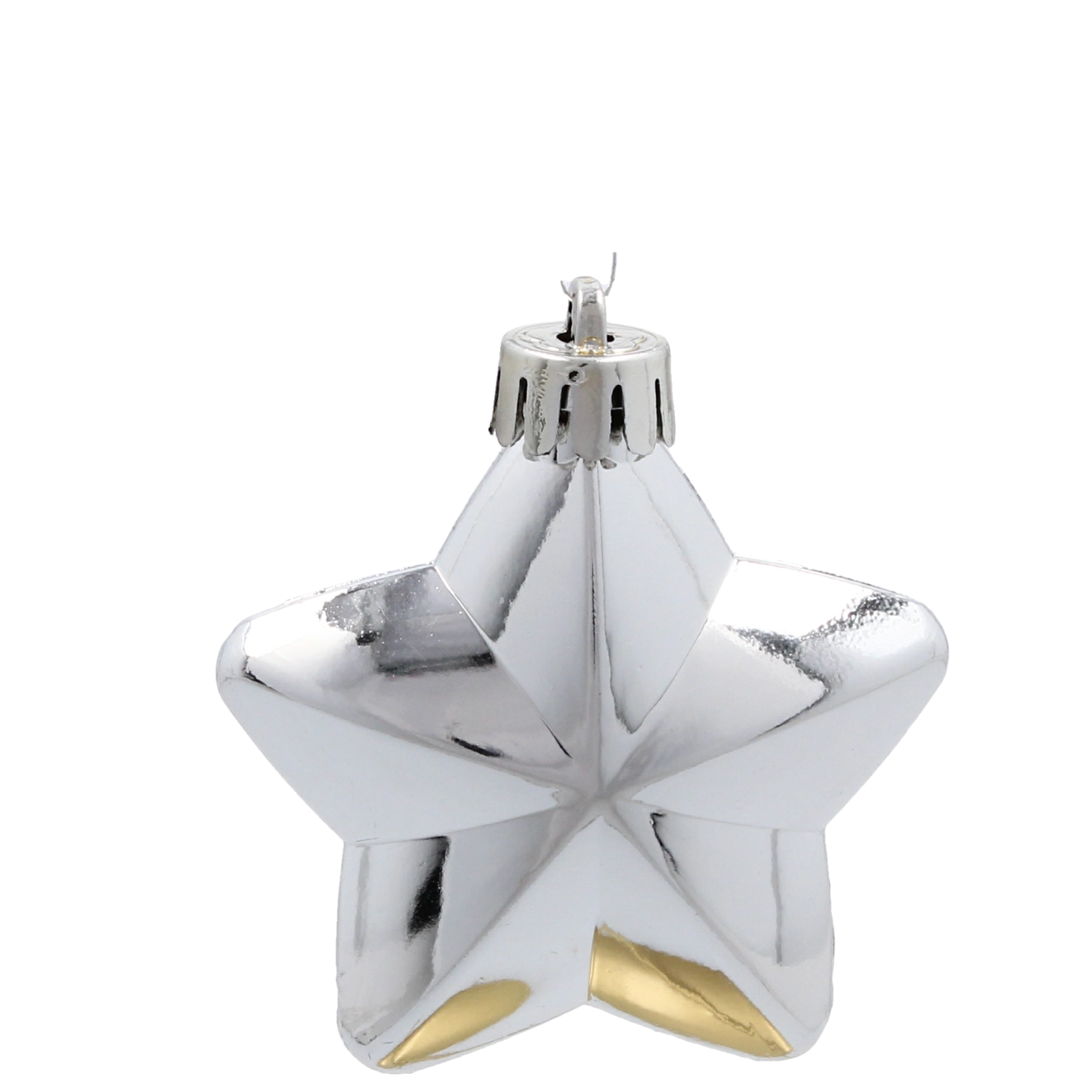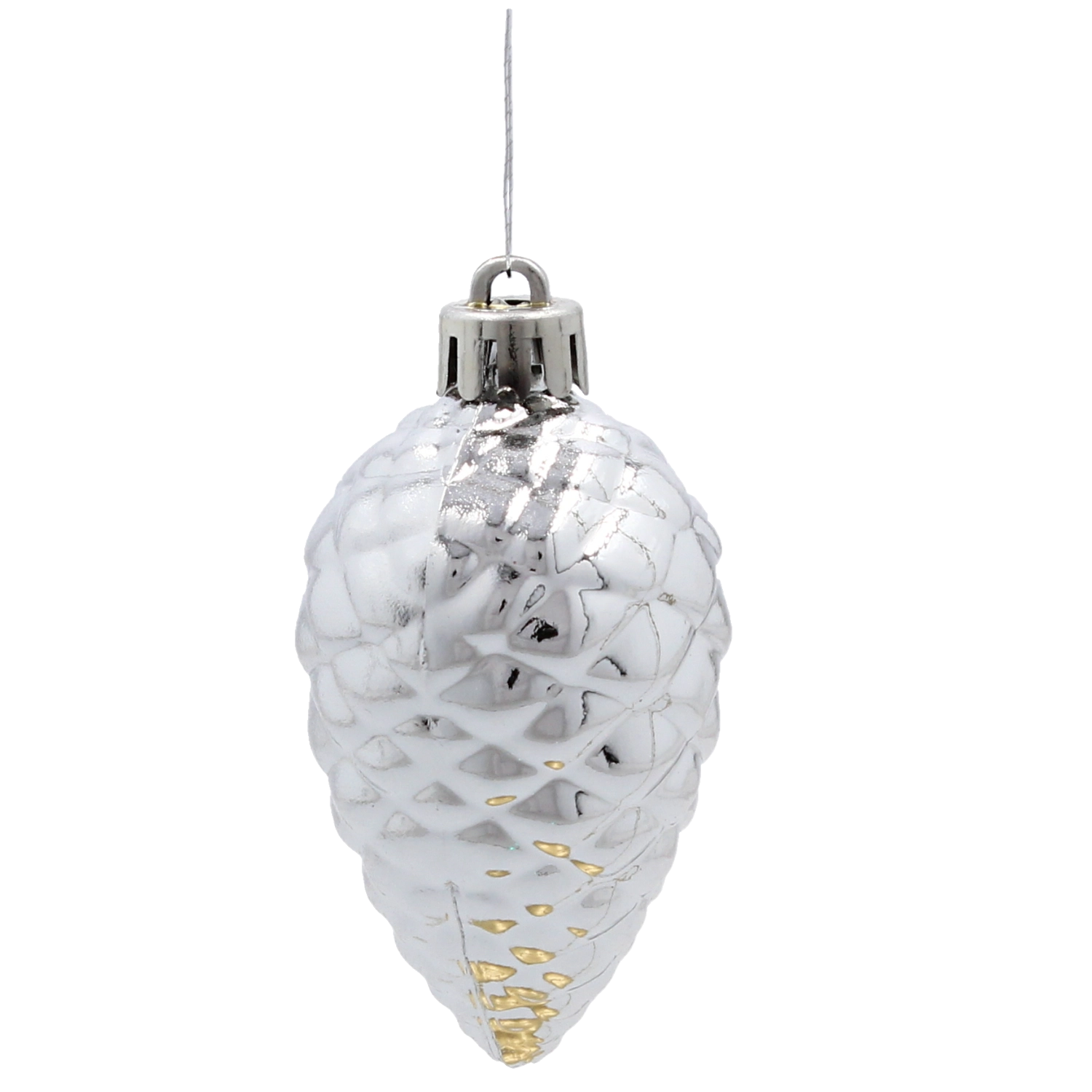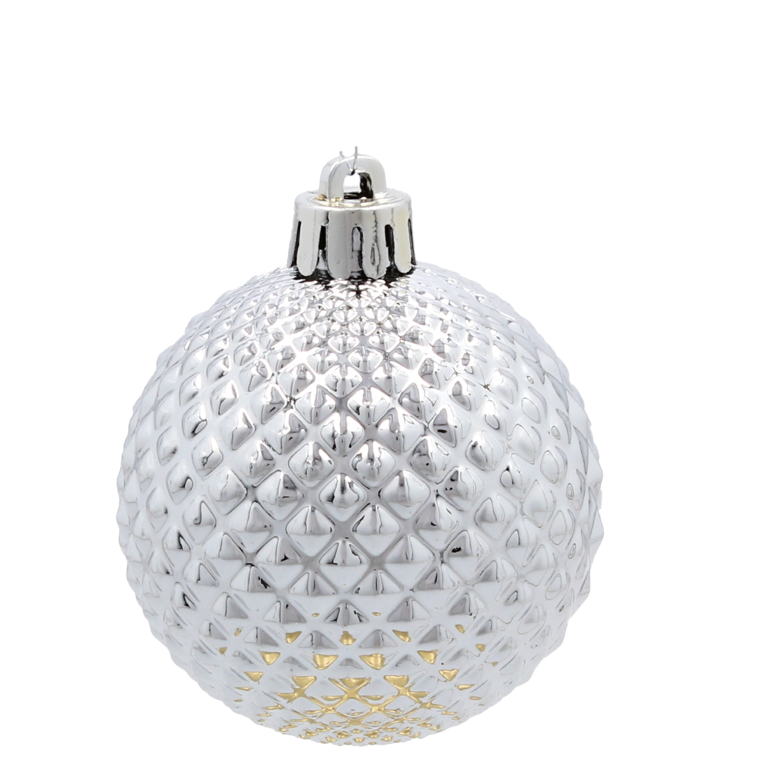 Varázsoljon otthonába ünnepi hangulatot a 60 darabos karácsonyi dísz elegáns ezüst-fehér kombinációjával. A különböző formák és felületek csillogást, egységes stílust és harmóniát kölcsönöznek a fának és a belső térnek.