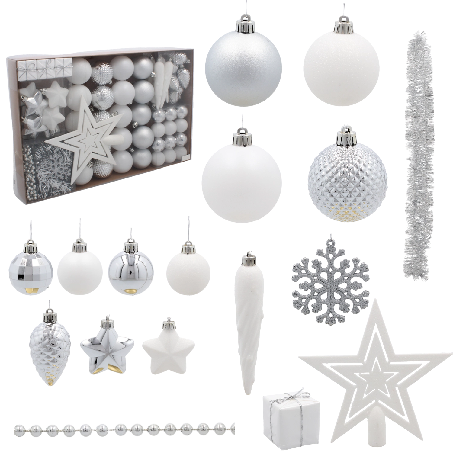 60 darabos karácsonyi dísz szett – ezüst és fehér