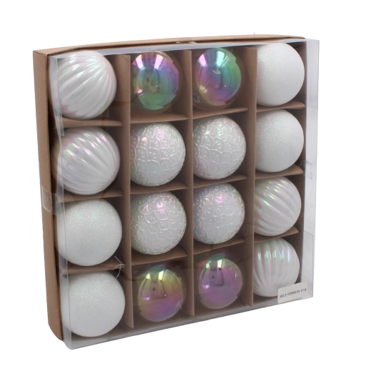 A törésálló műanyagnak köszönhetően a díszek biztonságosak, könnyűek és egyszerűen felakaszthatók. A felületek kombinációja – tükörfényes, gyöngyházfényű és finoman strukturált – mélységet és elegáns csillogást visz otthona minden sarkába.