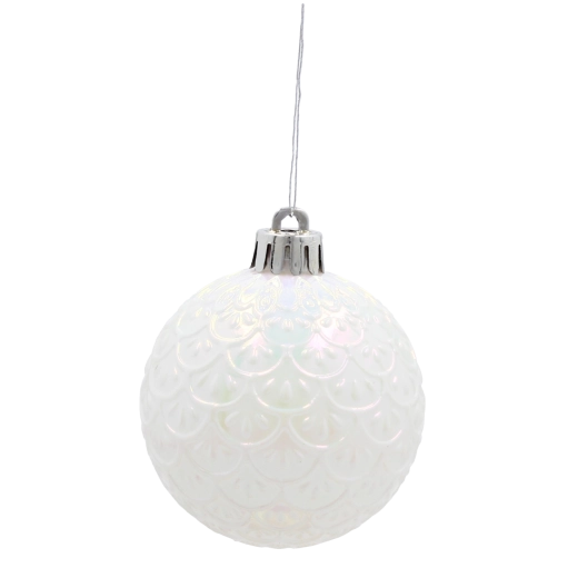 Alkosson tökéletesen összehangolt karácsonyi dekorációt a fehér és ezüst gömbök készletével, amelyek tiszta, ragyogó és időtálló megjelenést kölcsönöznek az enteriőrnek. Minden gömb univerzális, 6 cm-es átmérőjű – ideális méret az egyenletes elosztáshoz a fán, az ágak túlterhelése nélkül.