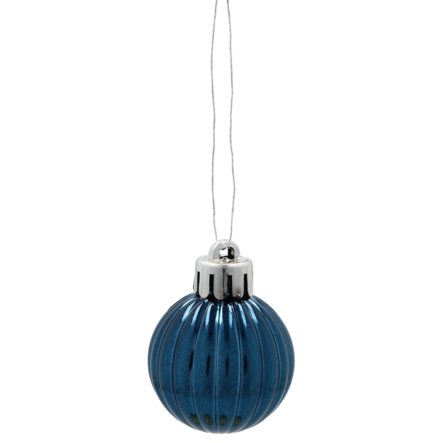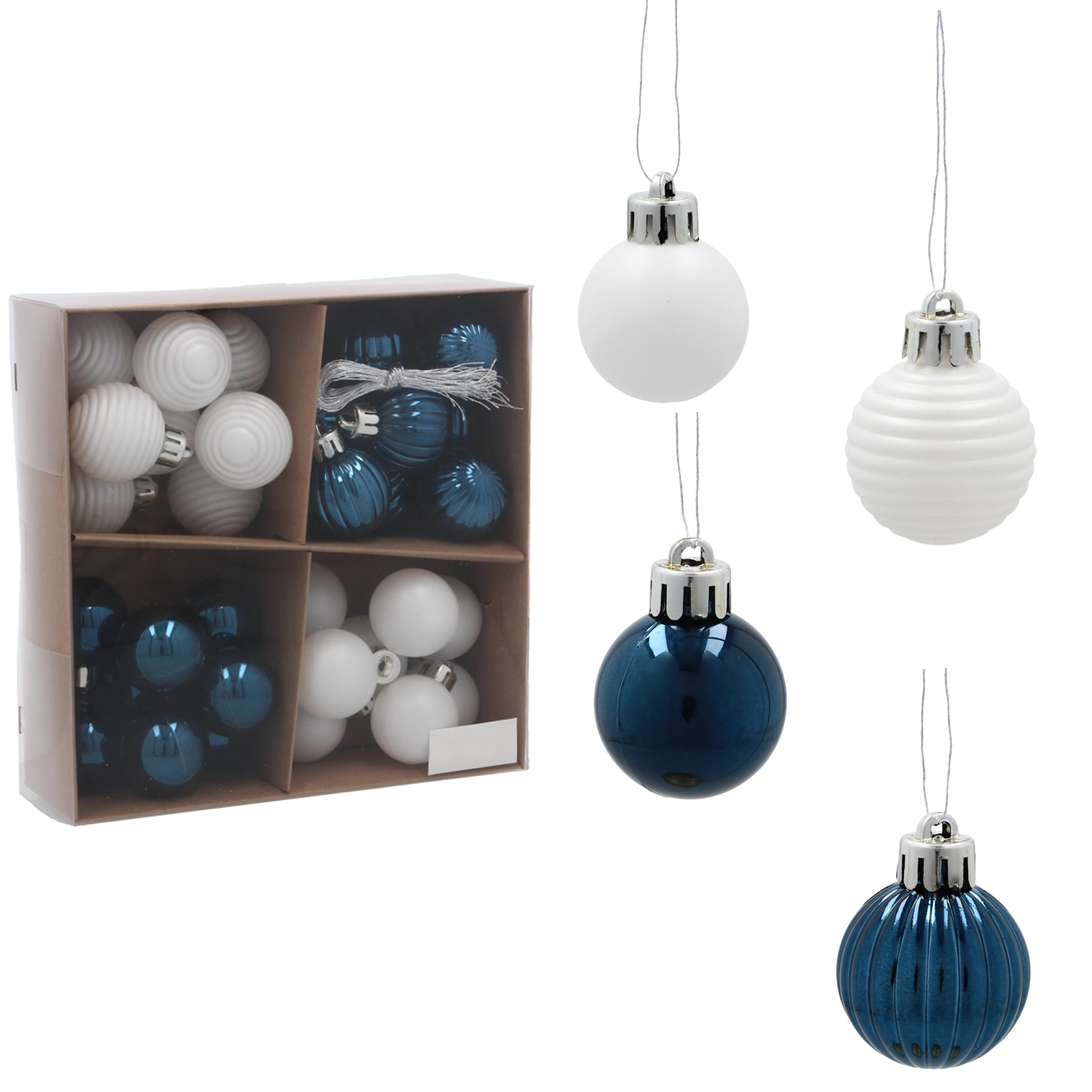 Alkoss harmonikus és trendi ünnepi díszítést ezzel a kompakt készlettel, amely 3 cm-es átmérőjének köszönhetően szépen kiegészíti a főbb dekorációkat és a finomabb ágacskákat is. A Téli kék kollekció sötétkék és fehér kombinációja letisztult, friss hatást nyújt, és remekül illeszkedik a modern enteriőrökhöz.