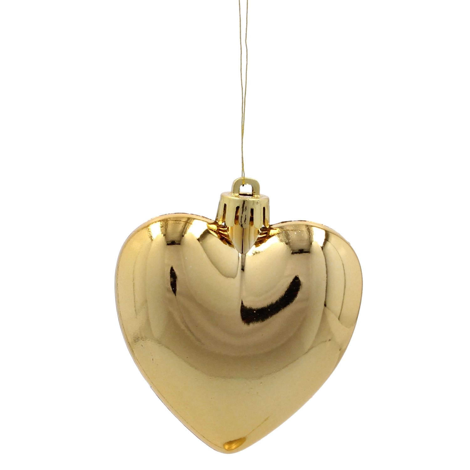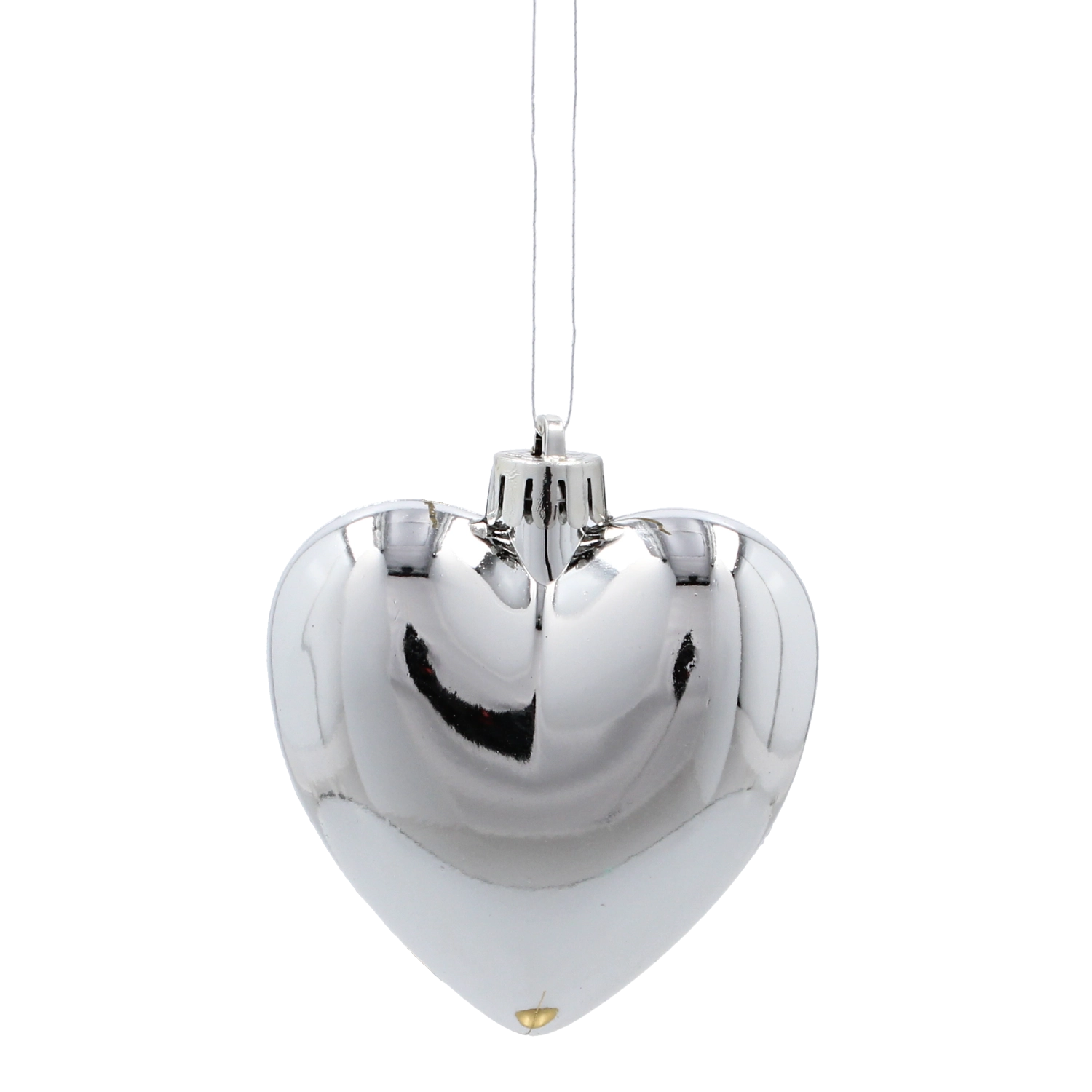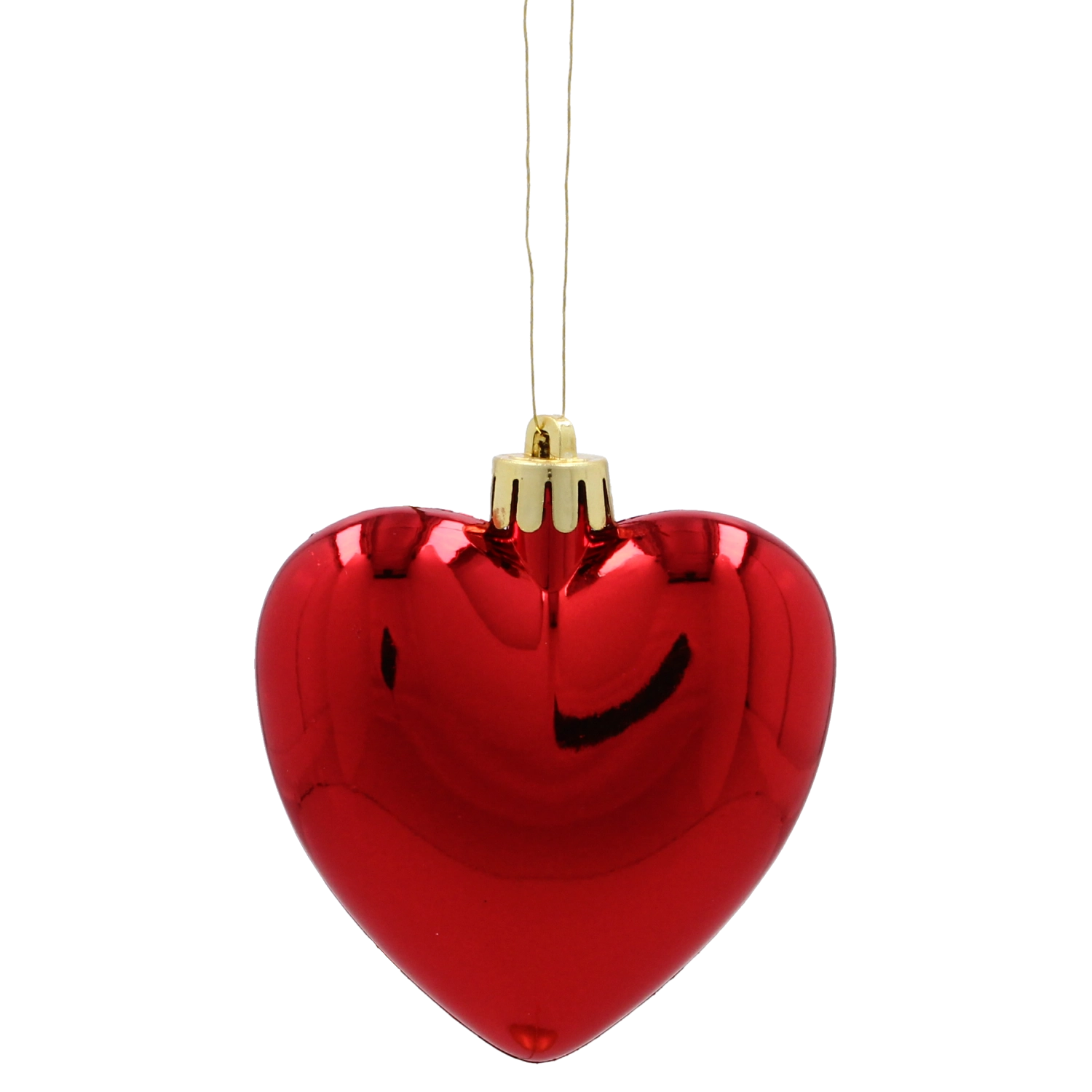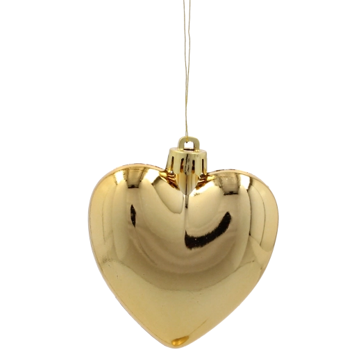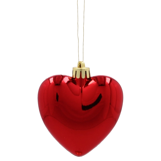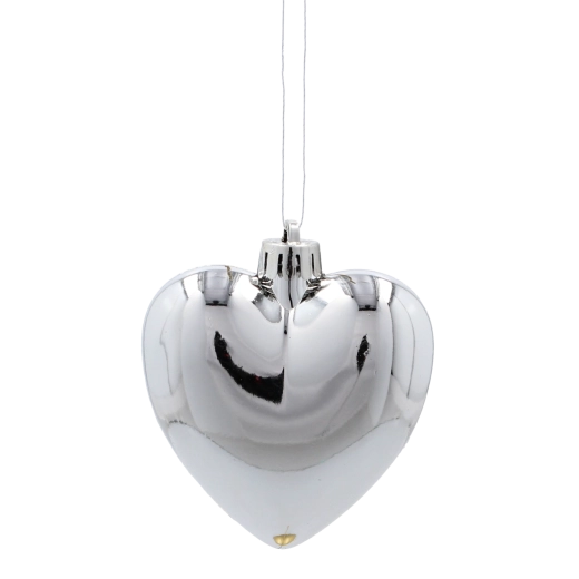 A fényes felület hangsúlyos csillogást és ünnepi hangulatot ad a fának, míg a szív forma meleg, otthonos összhatást teremt a dekorációban.
