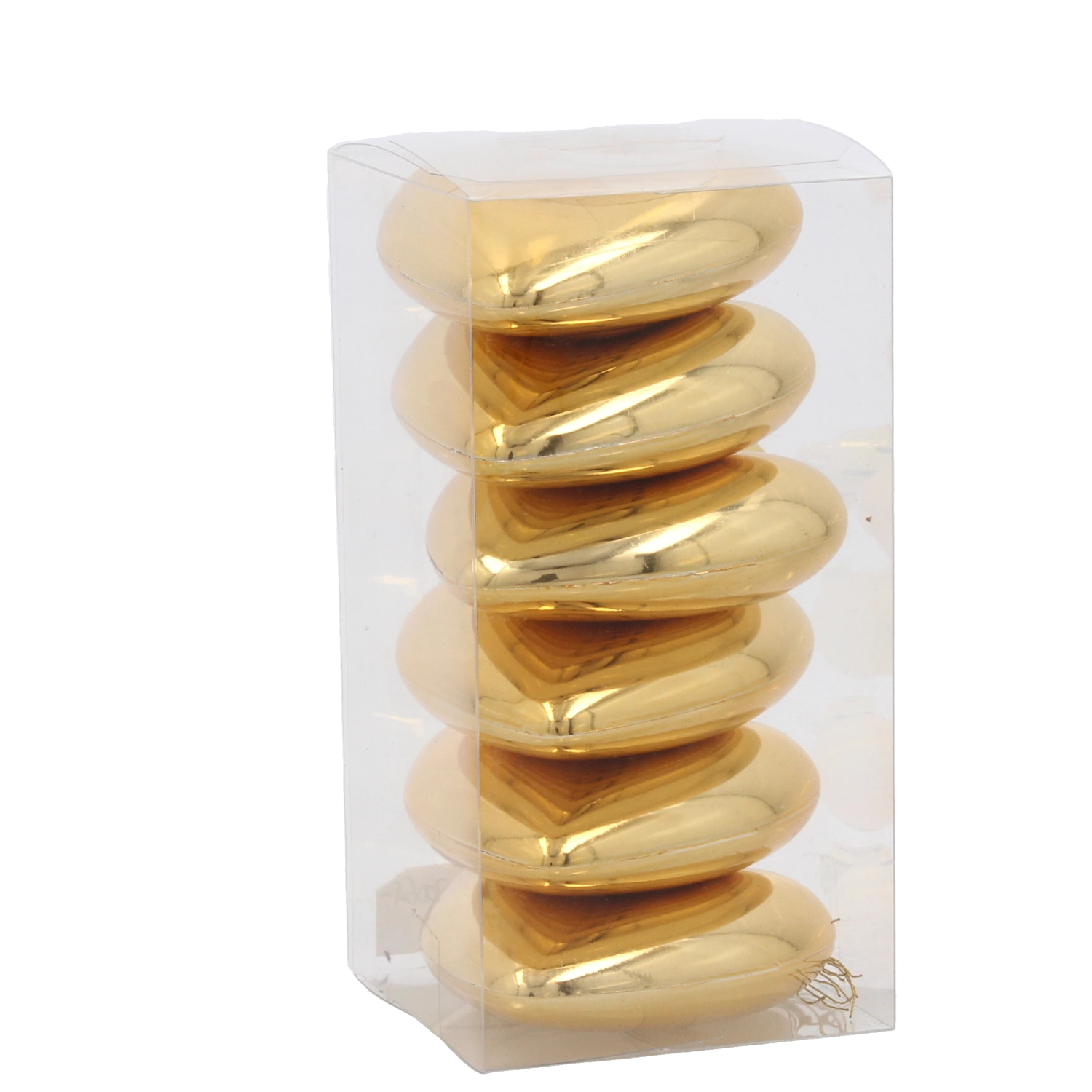 A törhetetlen műanyagnak köszönhetően a szívecskék könnyűek, tartósak és biztonságosak gyermekes vagy kisállatos otthonokban is. A praktikus akasztófül megkönnyíti az elhelyezést a fa ágaira, koszorúkra és girlandokra. Az átlátszó, szalagos csomagolásból stílusos ajándék lesz szeretteinek.