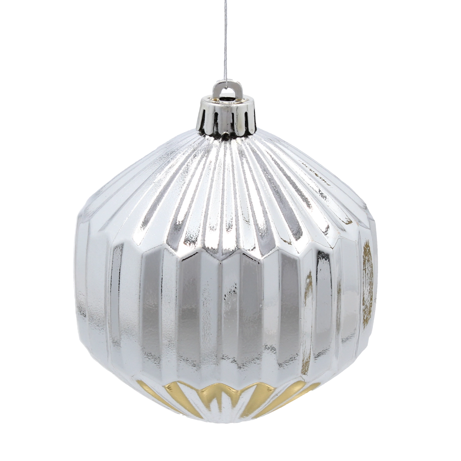 A felület facettái és bordázása kiemelik a fényvisszaverést, és látványos csillogást adnak a fának – ideális az ünnepi atmoszférához.