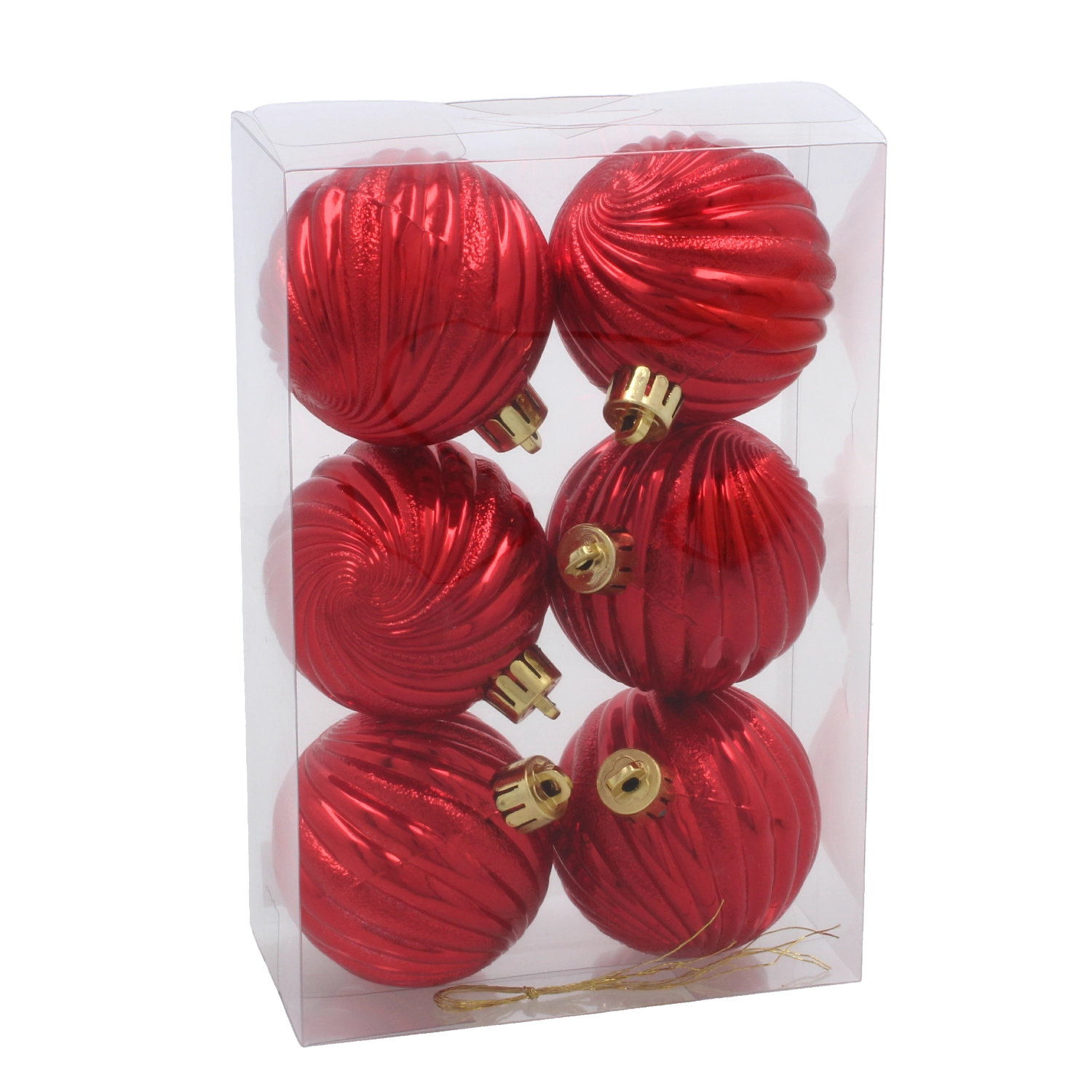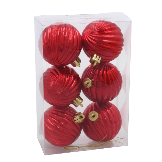 Adj klasszikus csillogást a fádnak a hat darabos, 6 cm átmérőjű karácsonyi gömbszettel piros, arany és ezüst színekben. A díszek törhetetlen anyagból készültek, könnyűek és biztonságosak gyerekek számára, fényes, spirálos domborfelületük van, és praktikus akasztózsinórokkal rendelkeznek a könnyű felhelyezéshez.