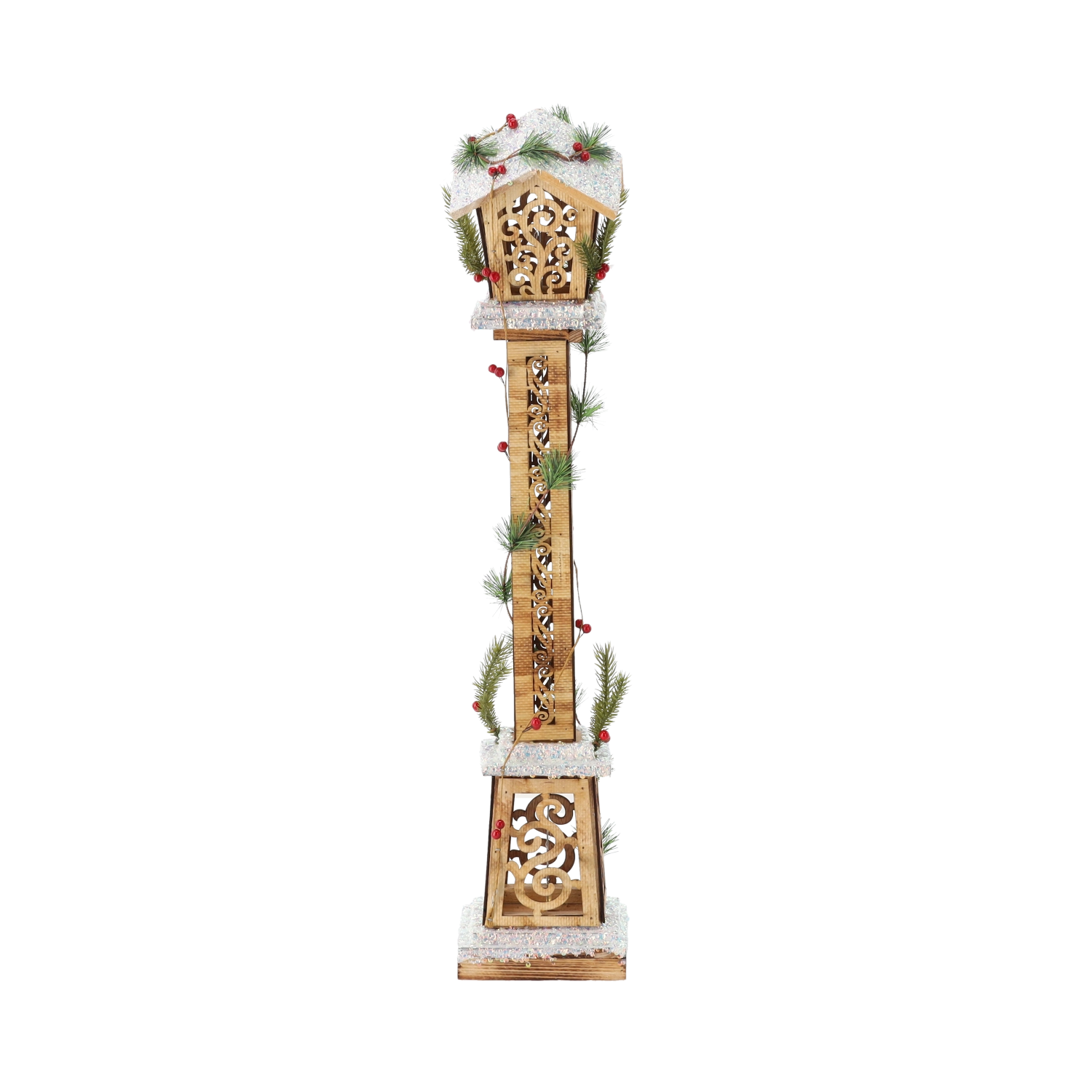 Minőségi fa anyag, kiegészítve mű fenyőággal, piros bogyókkal és havas szórással. Az összhatás élethű és elegáns bármely karácsonyi kompozícióban.