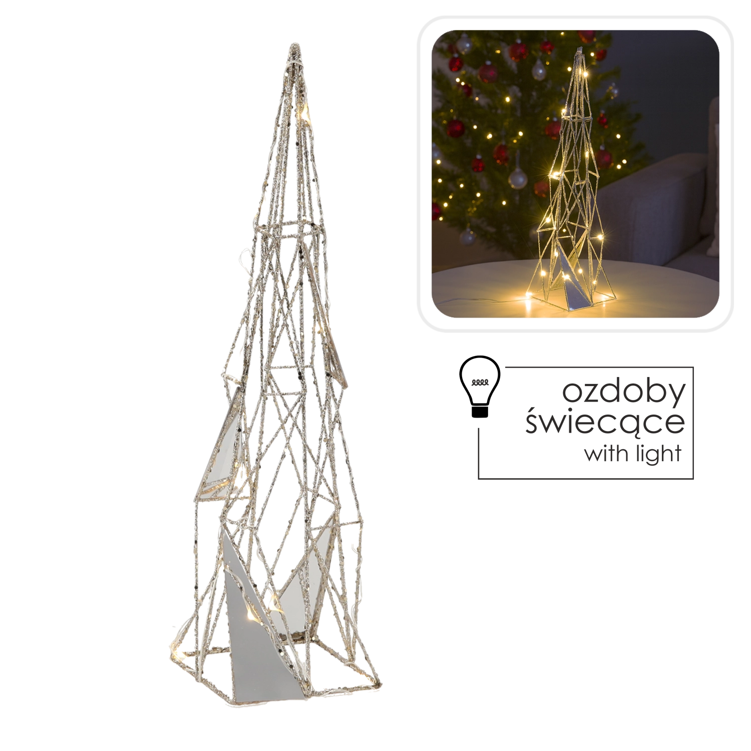 A modern, minimalista, geometrikus fa remekül mutat a komódon, a dohányzóasztalon vagy az ablakban. A 30 melegfehér LED fénye kellemes derengést teremt, kiemeli a karácsony varázsát, és elegáns, ünnepi jelleget ad a belső térnek.