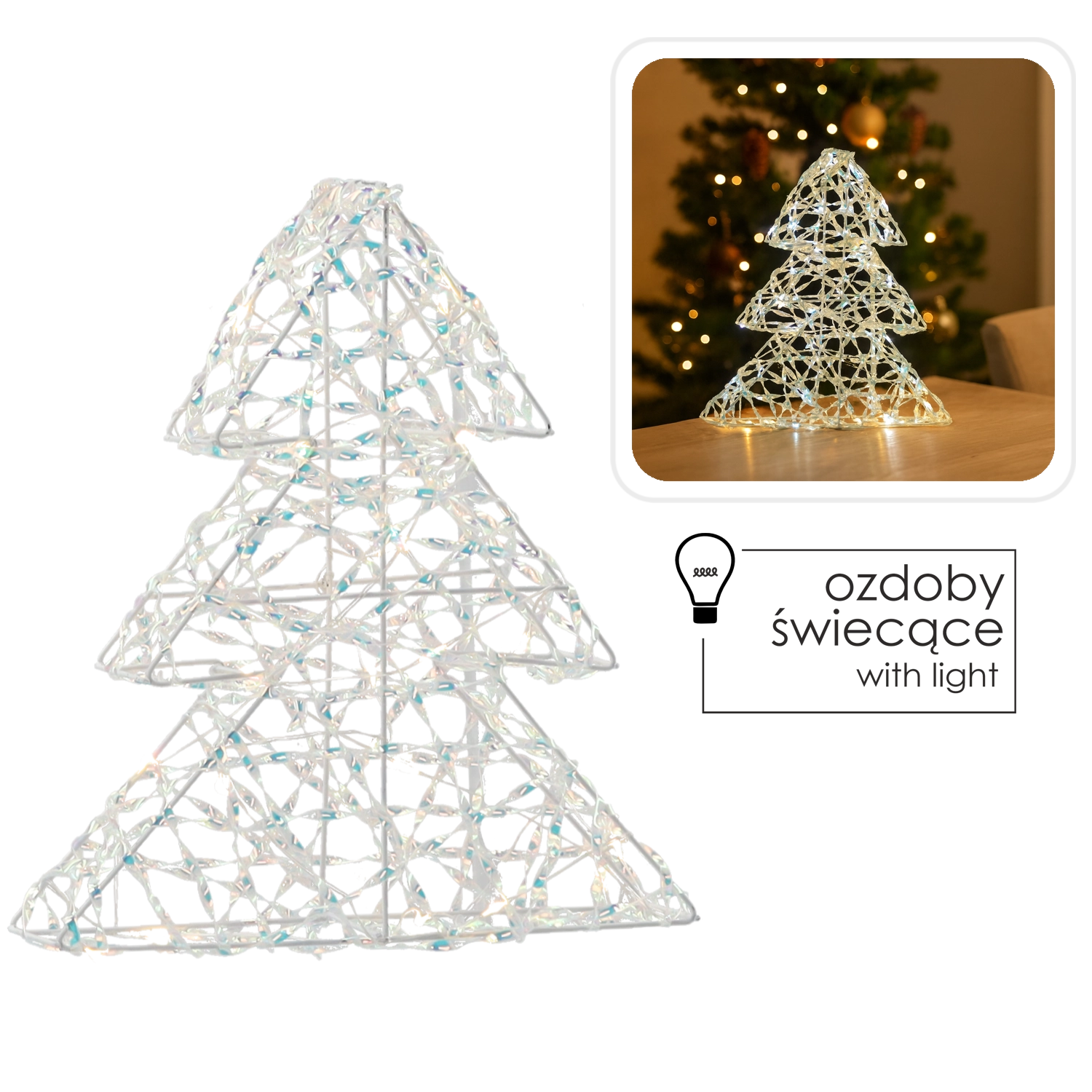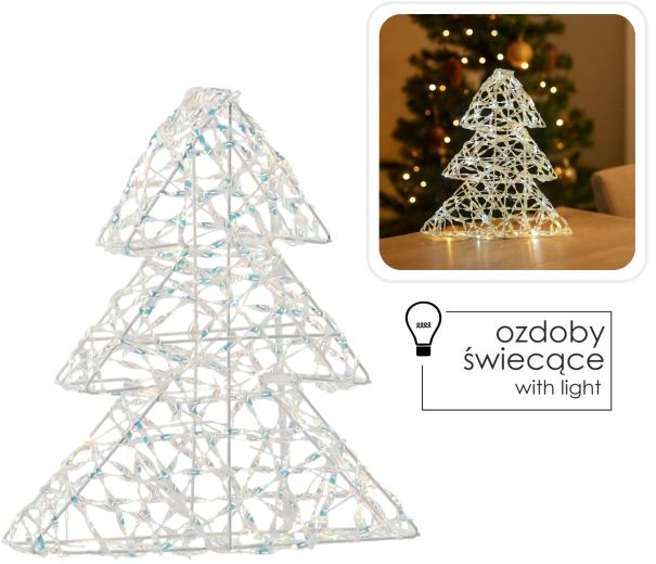 Varázslatos ünnepi hangulatot teremthet otthonában a finoman ragyogó LED fával, amely irizáló felületével nyűgöz le. A fényt számos árnyalatban veri vissza, különleges csillogást kölcsönözve a dekorációnak. Kompakt méreteinek köszönhetően szinte bárhol könnyen elhelyezhető a belső térben.