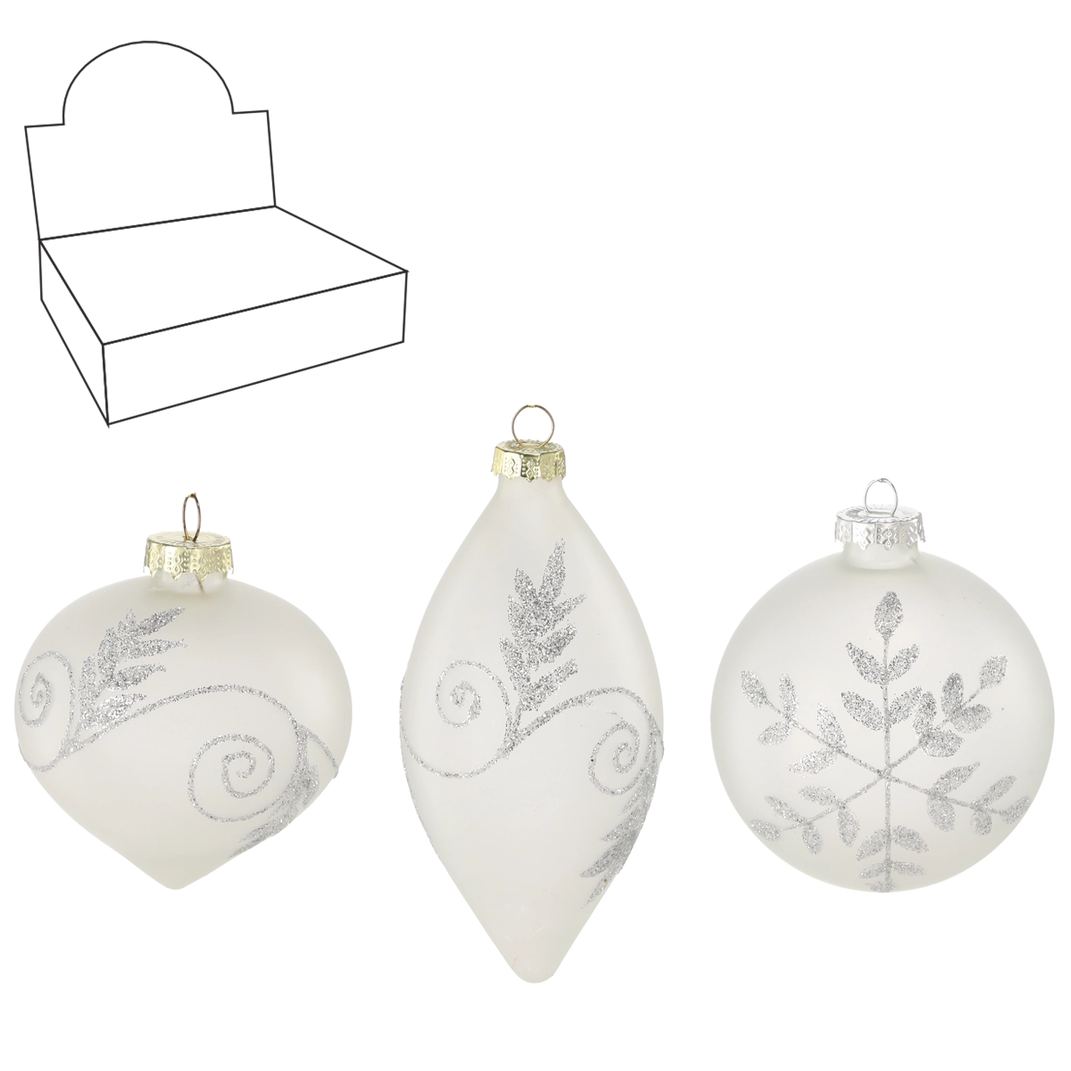 Elegáns, fehér matt üveg karácsonyi díszek, amelyek téli tisztaságot és luxust kölcsönöznek a fának és a belső térnek. A csomagban különböző minták keverékét találja, amelyek szépen kiegészítik egymást. A díszek precíz kivitelűek és visszafogott dekorral készülnek, így remekül illenek a modern és a hagyományos stílushoz is. Válasszon a kerek és a hosszúkás formák kombinációjából a harmonikus díszítésért. Üveg kivitel, fehér matt felület, minták keveréke és különböző formák a figyelemfelkeltő hatásért a fán.