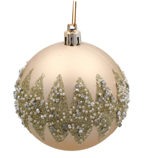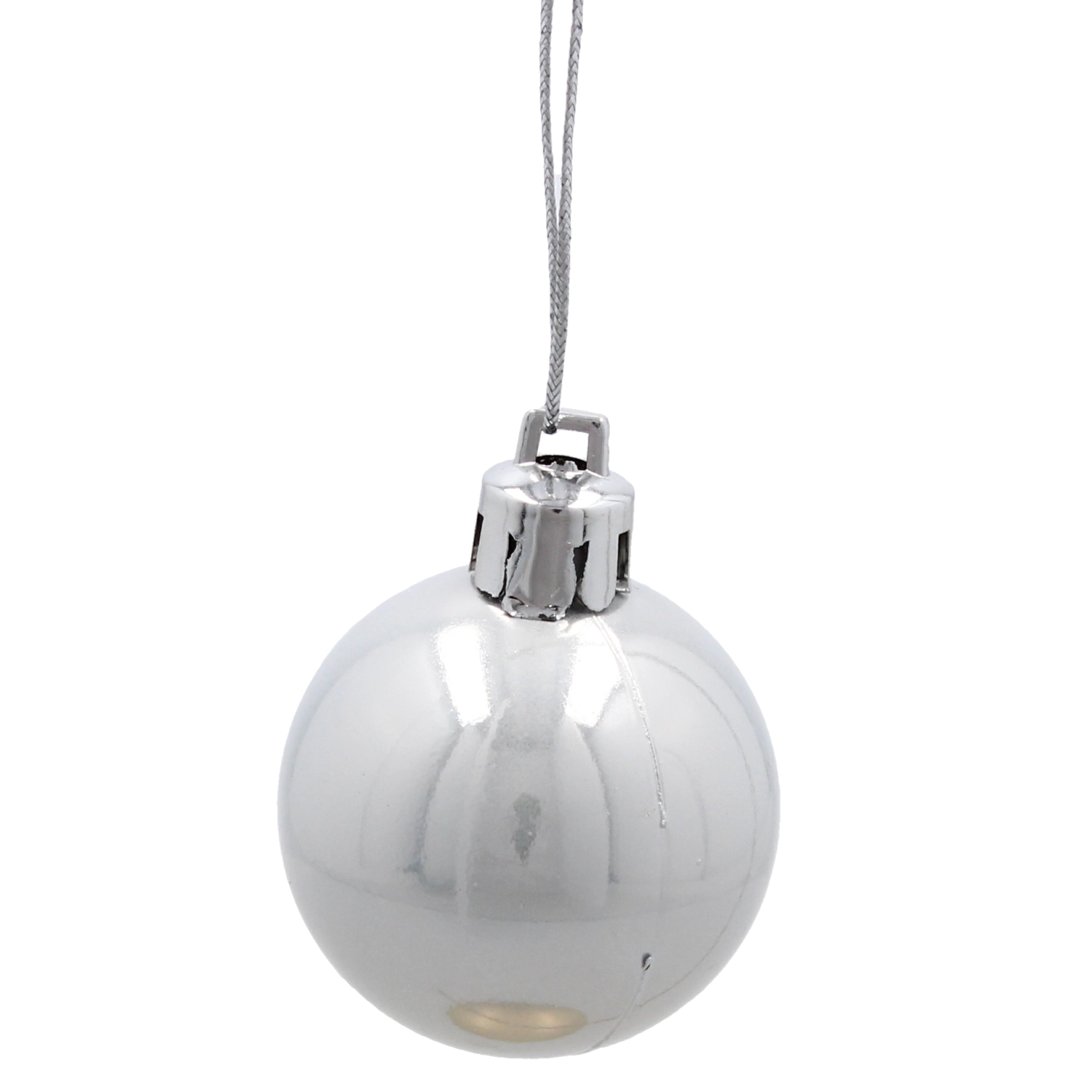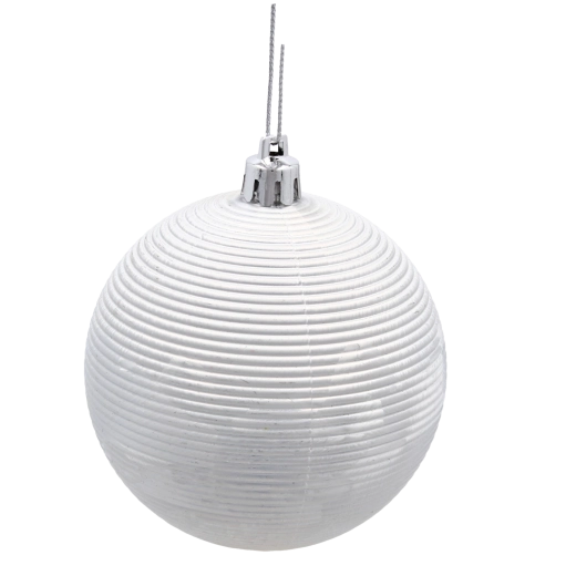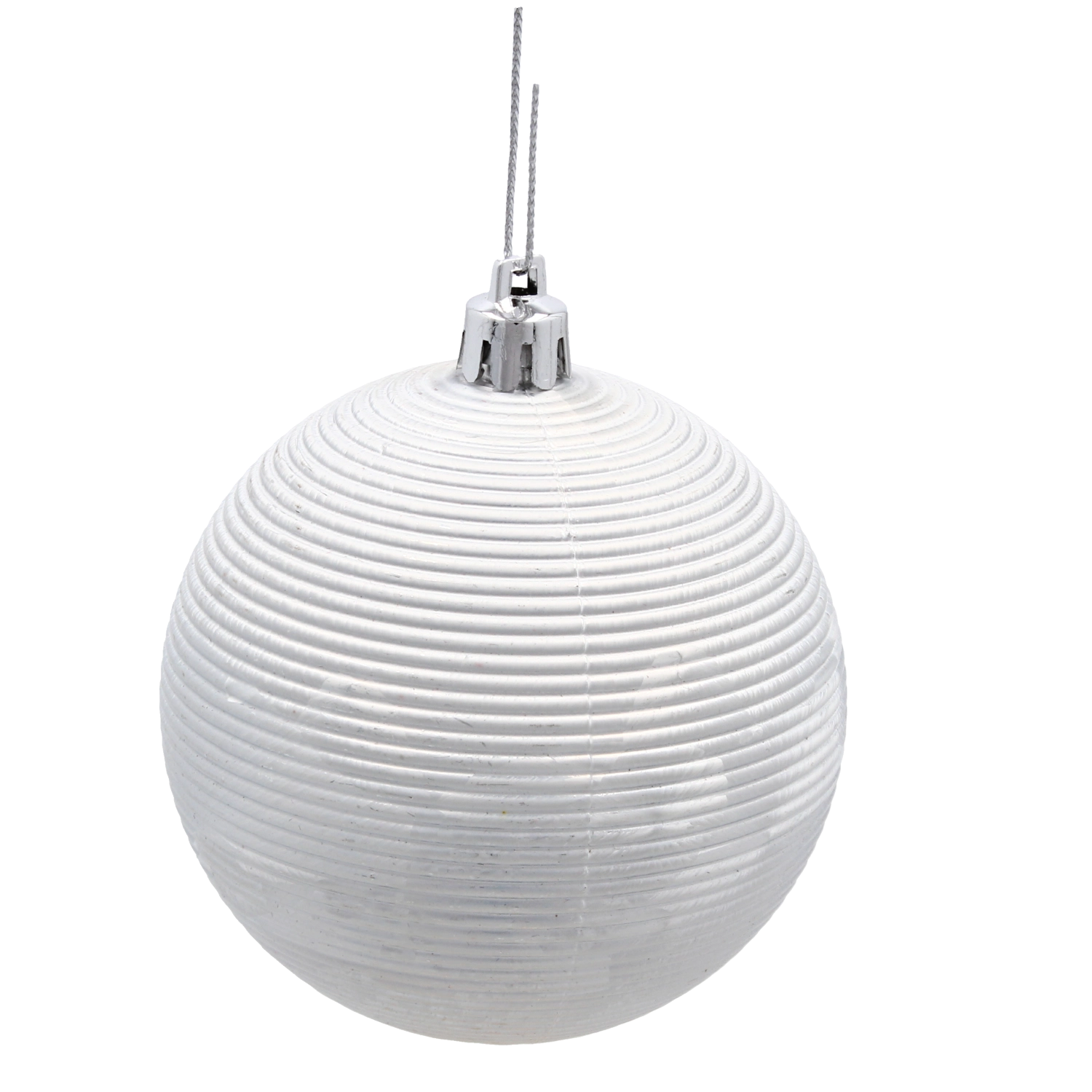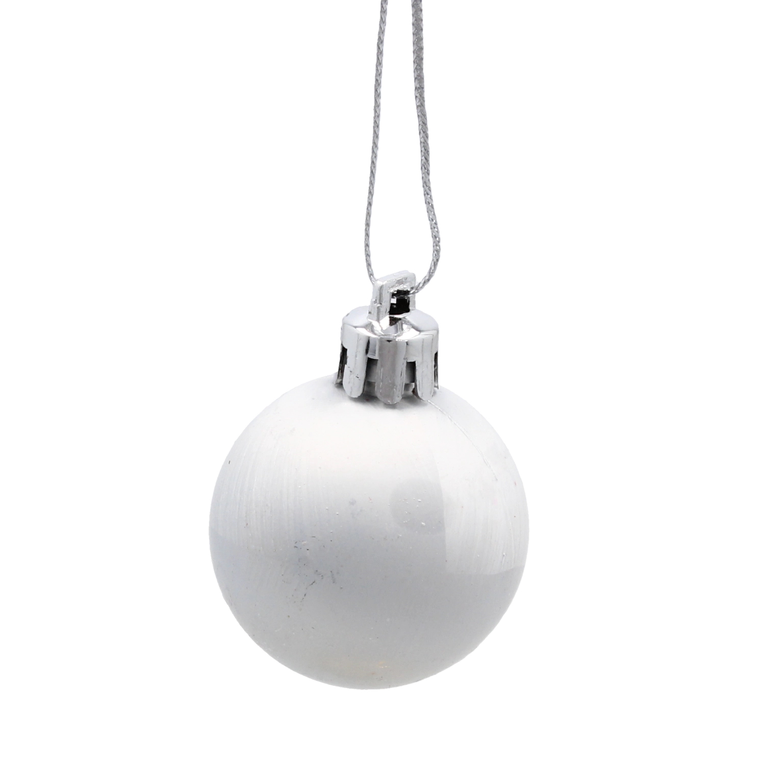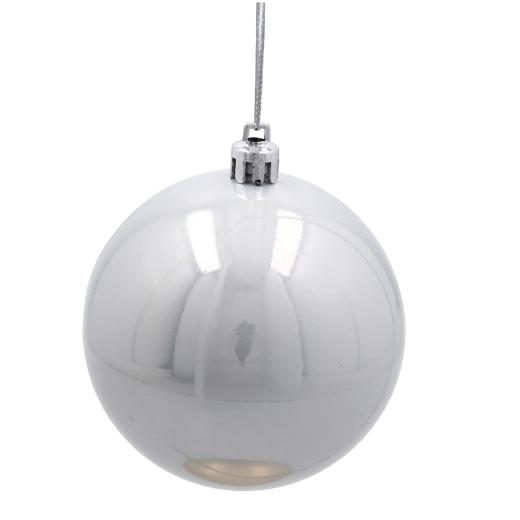 A sima, fényes, csillogó és strukturált gömbök kombinációja mélységet és dinamizmust ad a fának további dekoráció nélkül is.