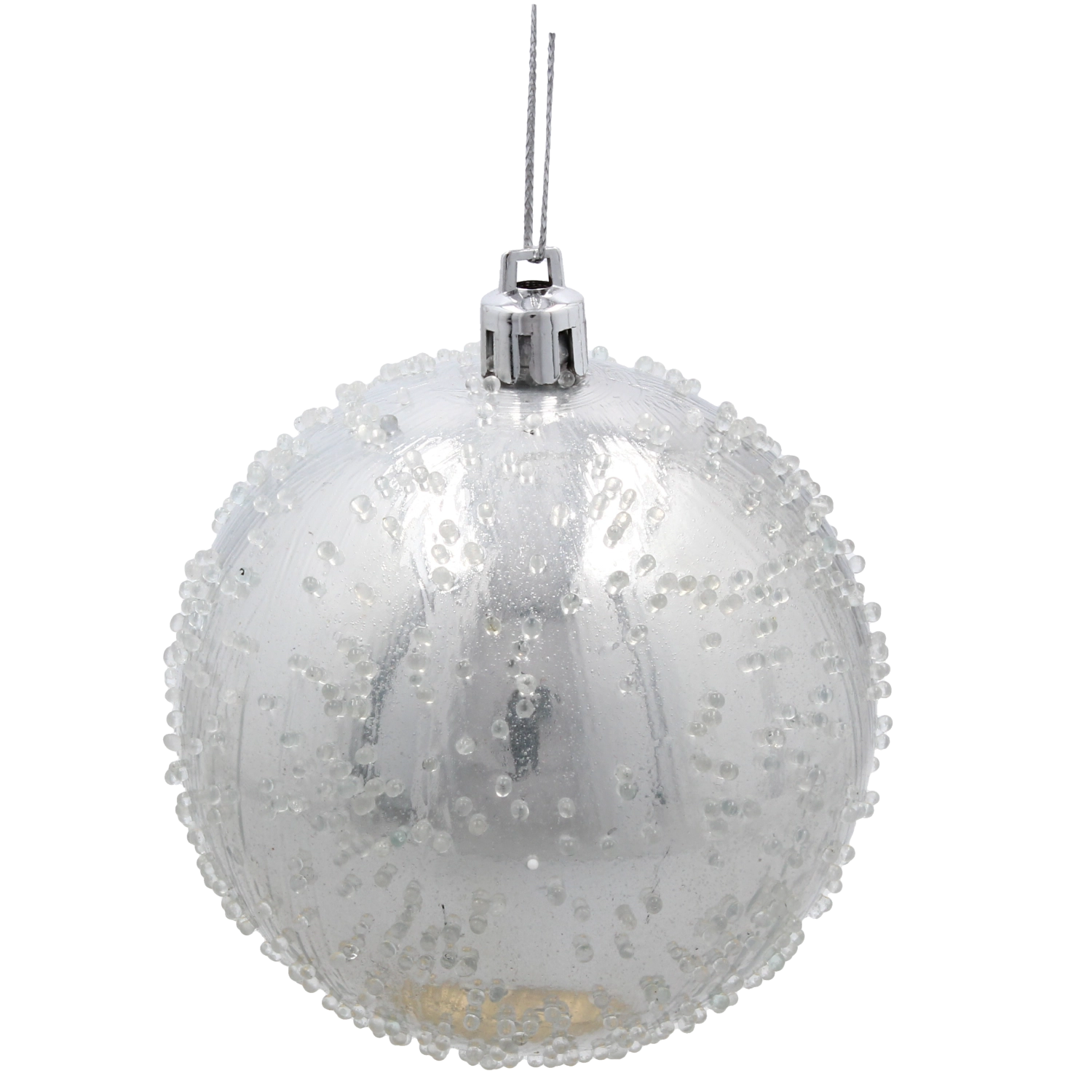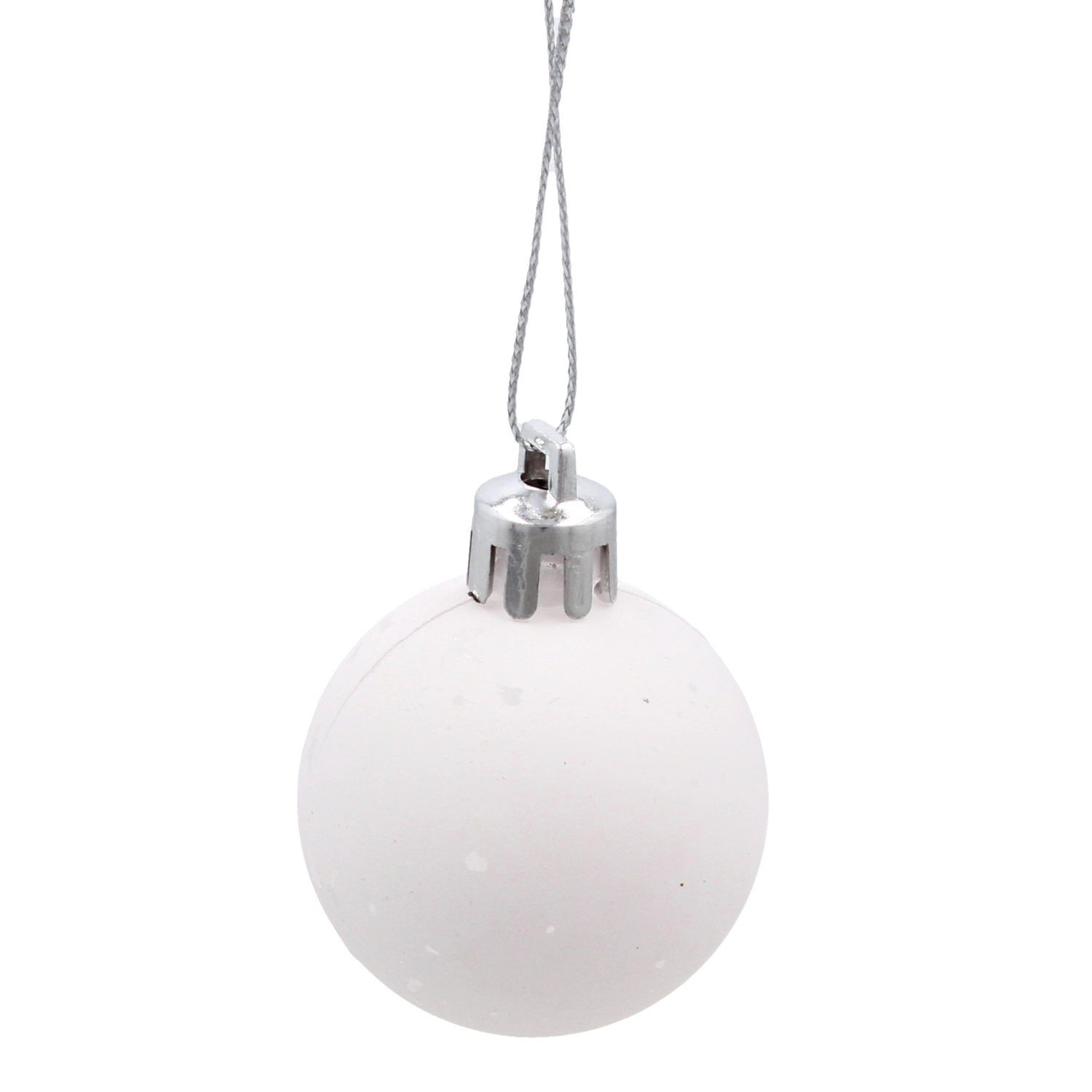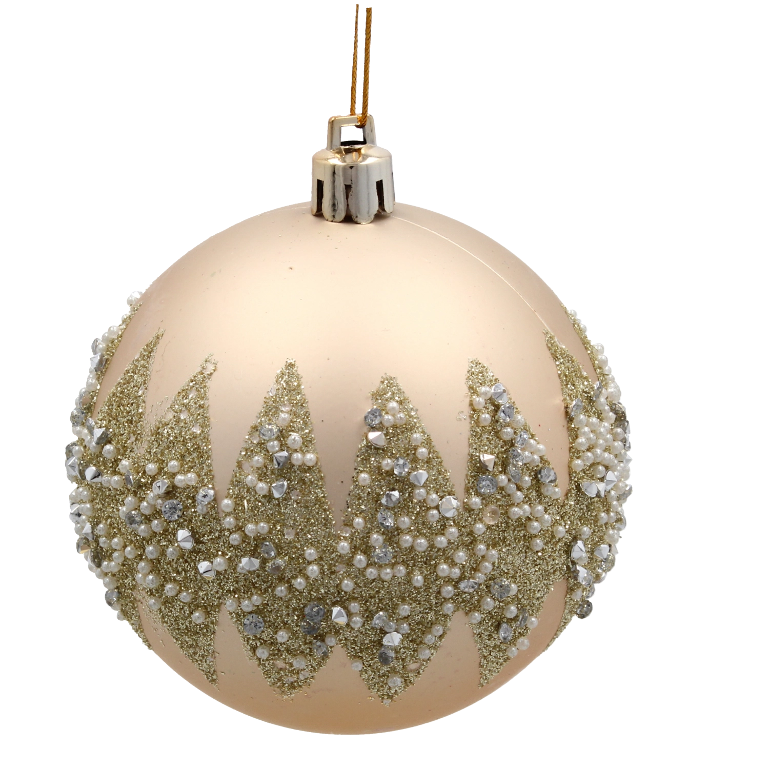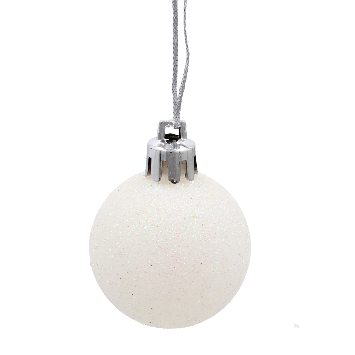 A sima, fényes, csillogó és strukturált gömbök kombinációja mélységet és dinamizmust ad a fának további dekoráció nélkül is.