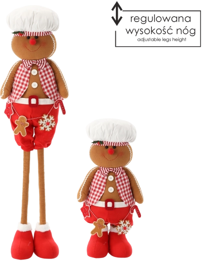 A bájos karácsonyi dísz, egy teleszkópos lábakkal ellátott mézeskalács fiú, karácsonyi varázst visz otthonába. A állítható magasságnak köszönhetően könnyen a különböző terekhez igazítható, míg a stabil szerkezet és a minőségi anyagok hosszan tartó élettartamot és szép megjelenést biztosítanak a fa mellett, a kandallón vagy az ünnepi asztalon.
