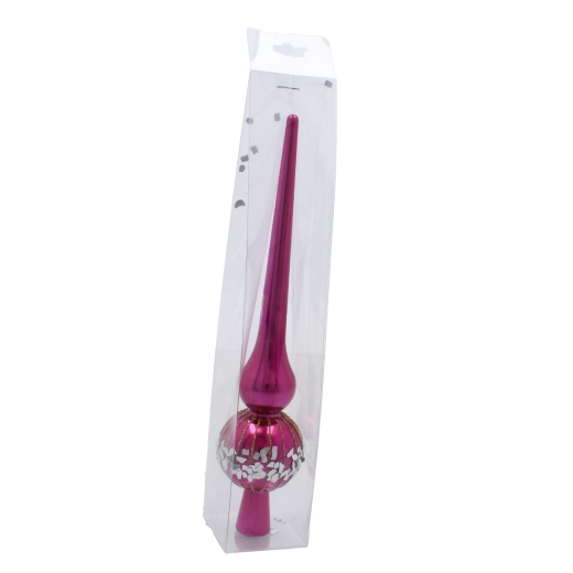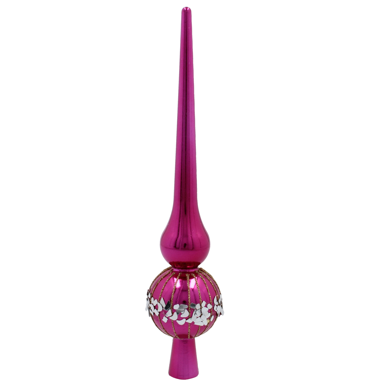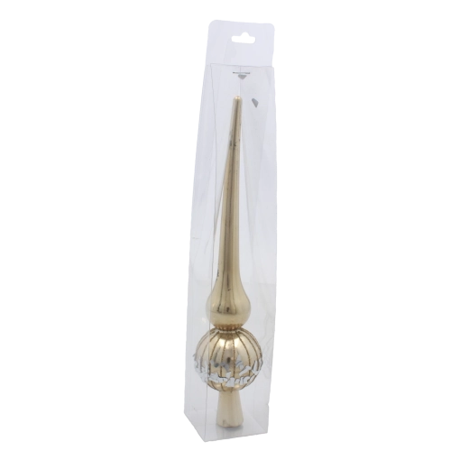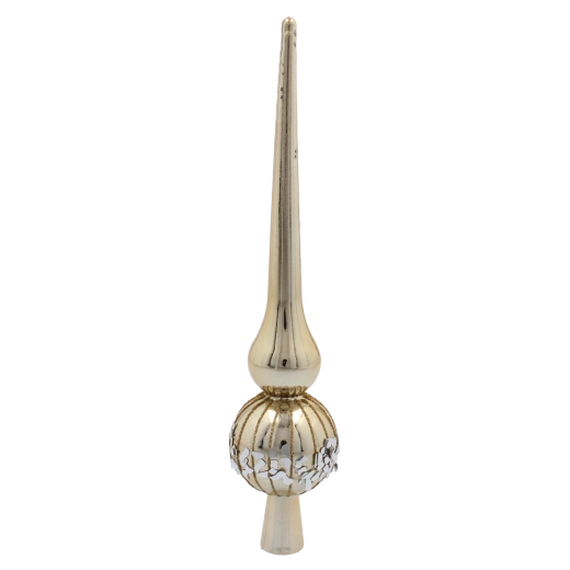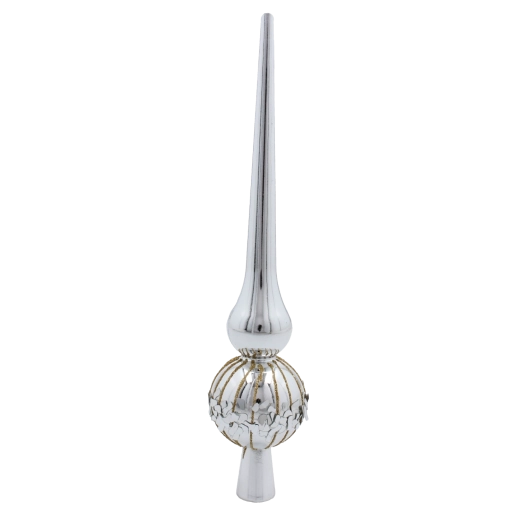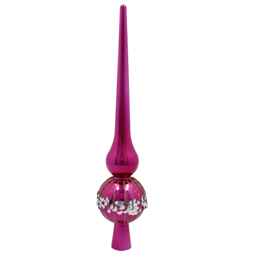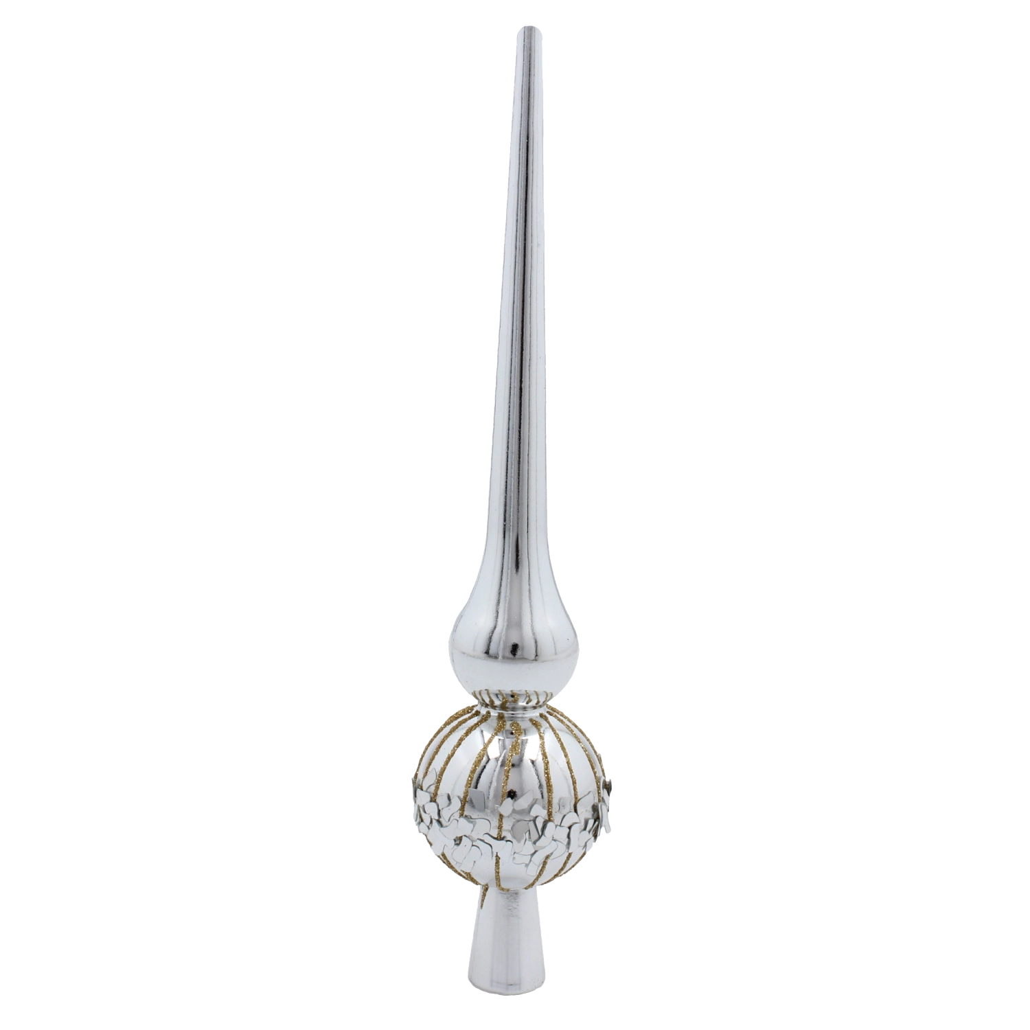 Tegye fel a fára az ünnepi koronát egy elegáns, 25 cm magas üveg csúccsal. Kézzel fújt és festett dísz ezüst, arany vagy piros színben, amely gyönyörűen veri vissza a fényt és varázslatos ünnepi hangulatot teremt. A minőségi üvegnek és a gondos kivitelezésnek köszönhetően tartós, hosszú távú használatra alkalmas.